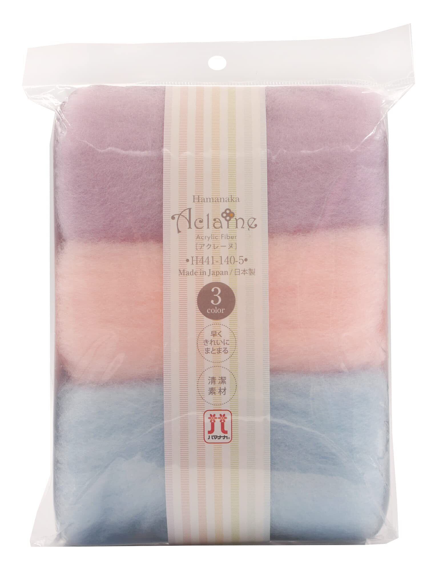 ハマナカ 羊毛フェルト アクレーヌ 3色セット 各色約8g入り パープル・ピンク・水色系 H441-140-5