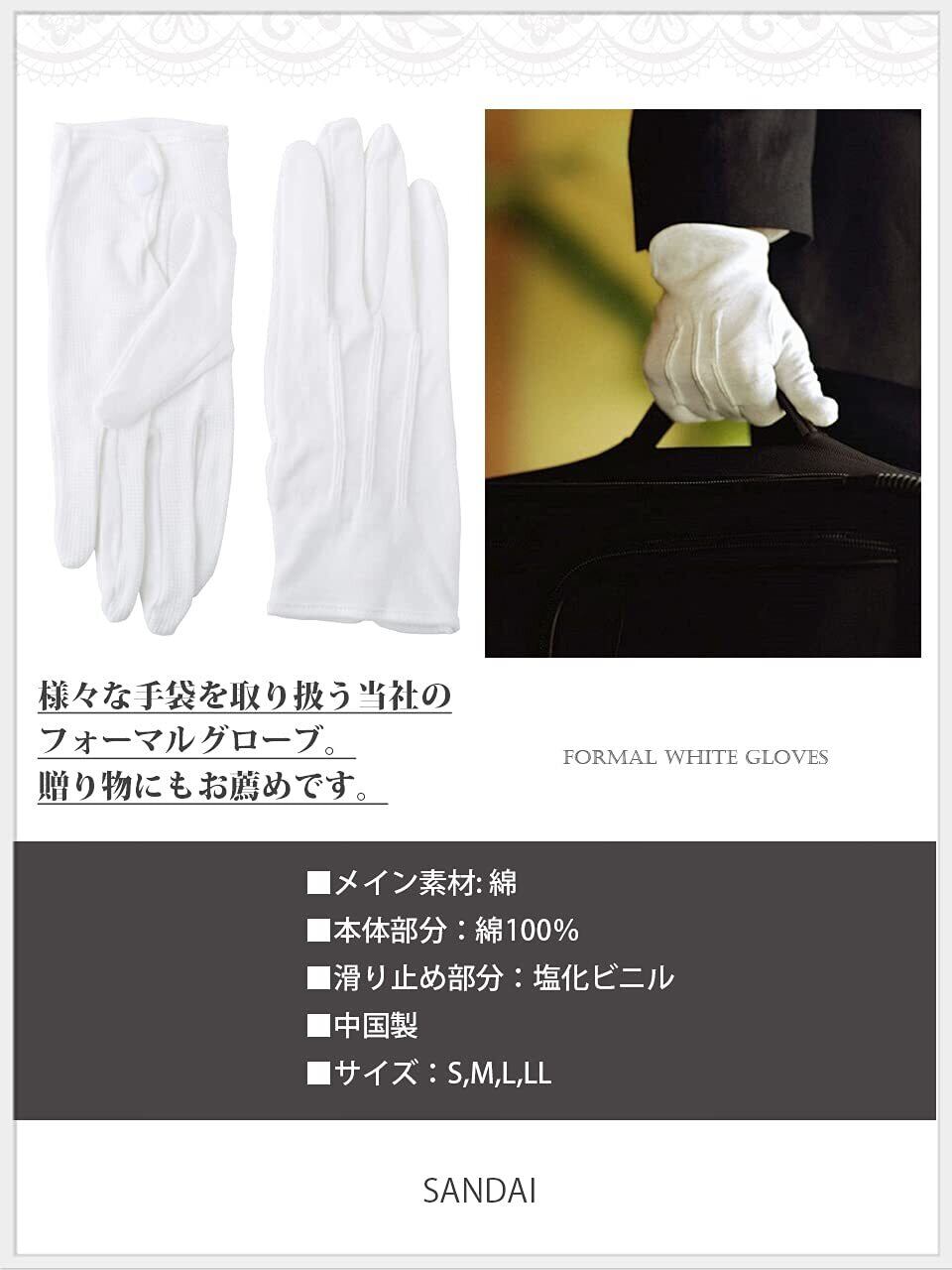 [SANDAI] ブラック追加 メンズ ハイブレス 滑り止め 綿 フォーマル 白 手袋 S M L コットン グローブ 1双 3双 セット から 選択 タクシー バス 運転手方 運転士 教習所教官 技術士