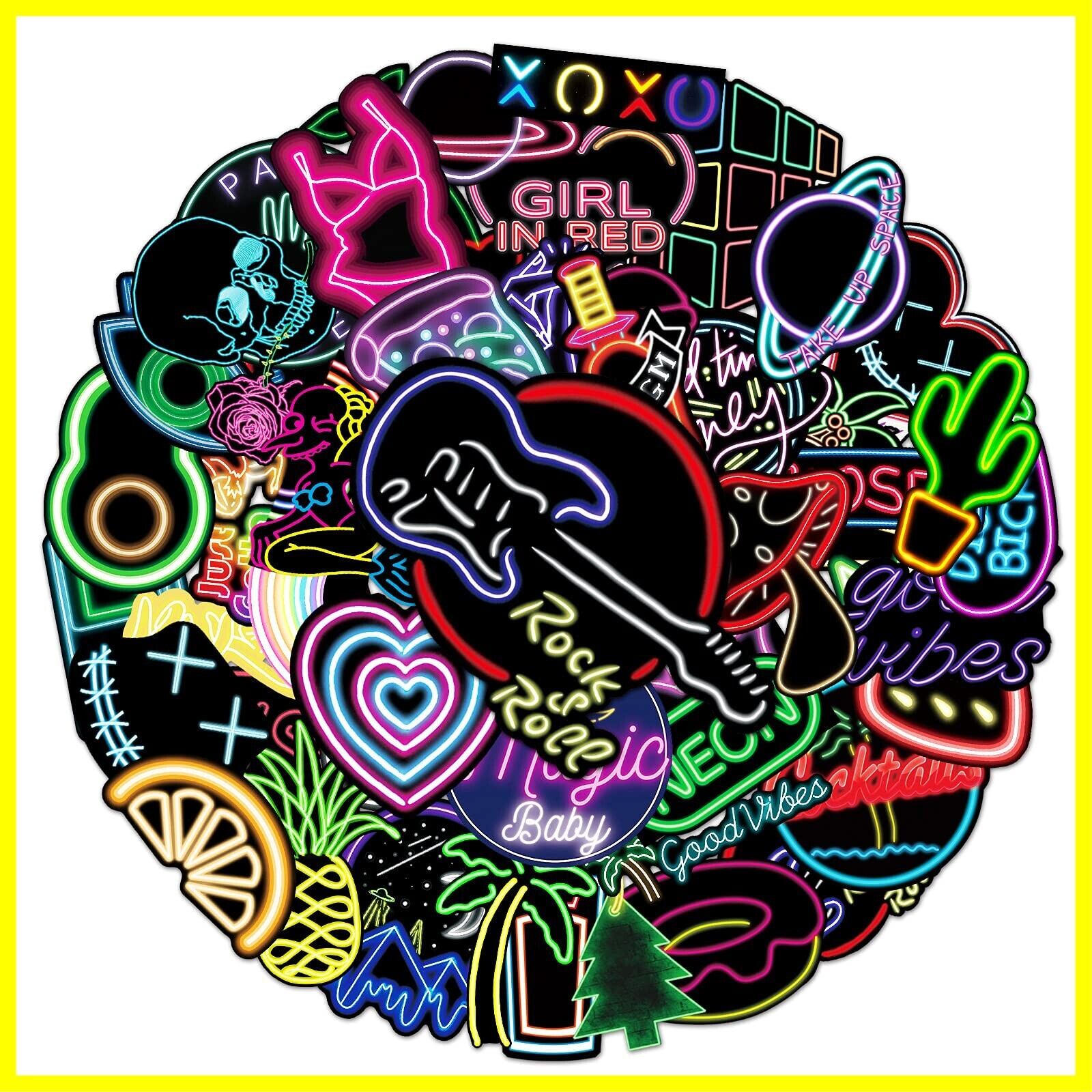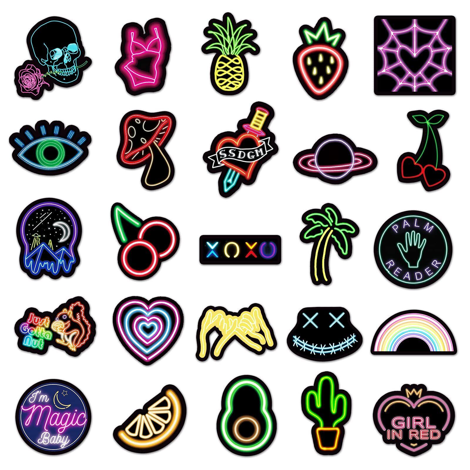 ステッカー シール 100枚 おしゃれ スマホ アニメ 防水 アウトドア バイク おもしろ かわいい スーツケース ヘルメット パソコン 携帯 スケートボード (ネオンライト)
