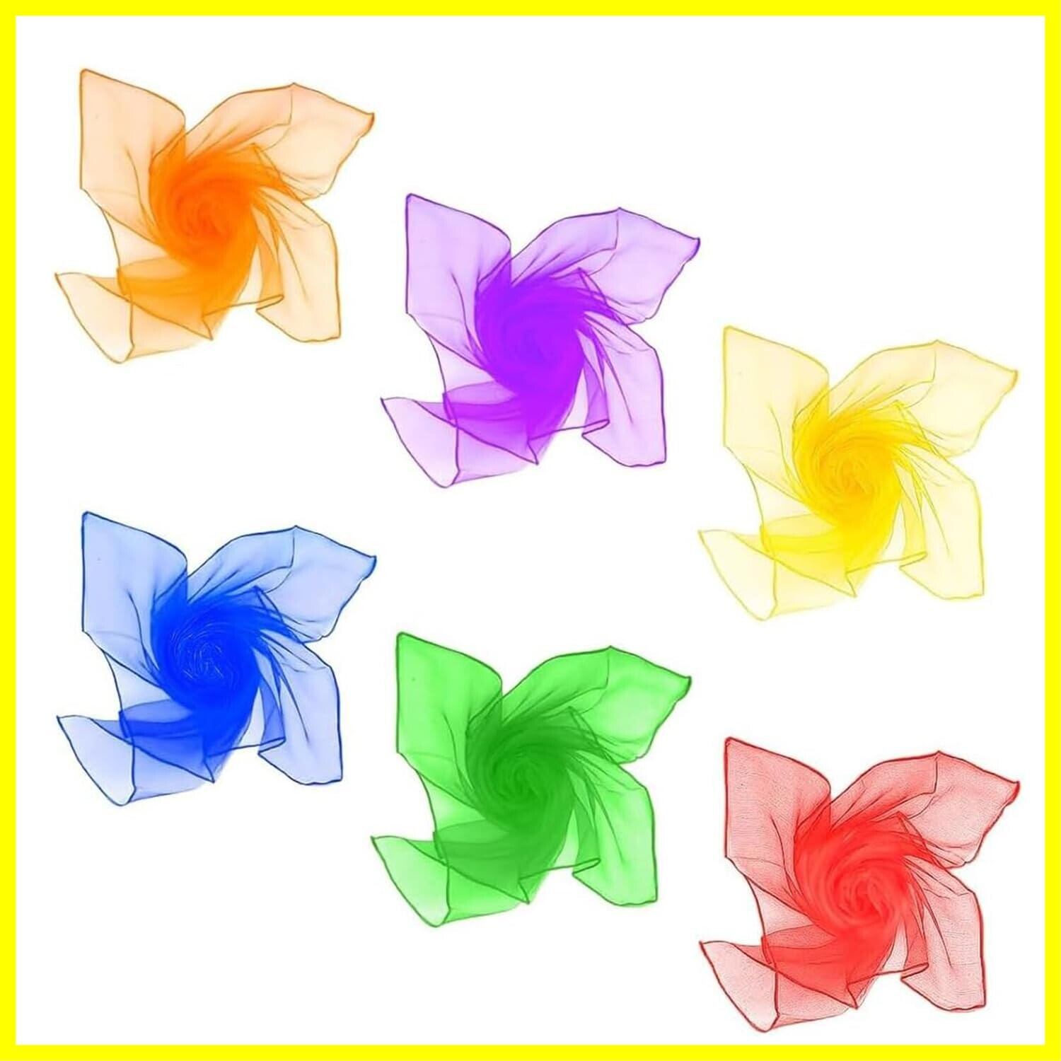 ChasCoCoカラー シフォン シルクスカーフ 6色正方形 四角 ダンス スカーフ カラフル スカーフ 巻き方 60*60cm お遊戯 子ども スカーフ遊び ダンス 運動 ジャグリング などに 6枚入り