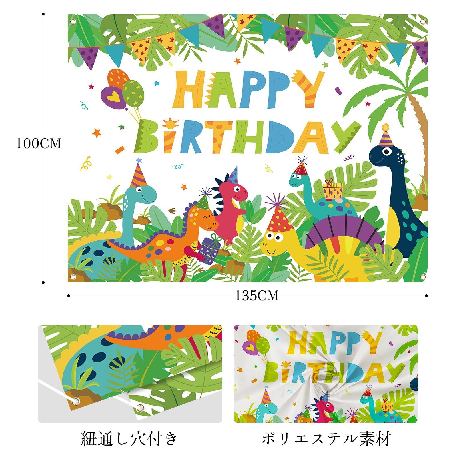 Paready バースデー タペストリー 誕生日 飾り付け 壁掛け フォトポスター 写真背景 壁 飾り Happy Birthday シンプル おしゃれ 装飾 デコレーション パーティー お祝い 女の子 男の子 135*100cm 恐竜