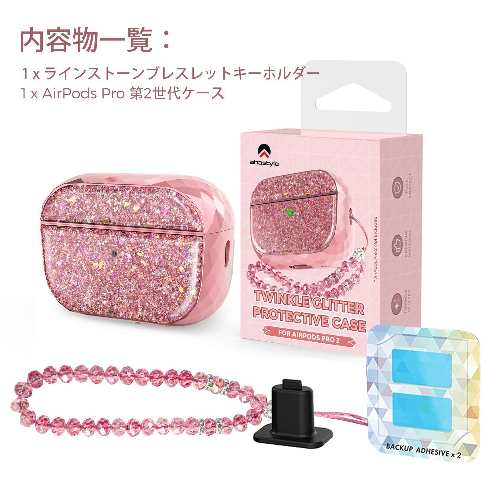 AhaStyle 贅沢 キラキラ AirPods Pro 2 ケース (USB-C/ライトニング)保護カバー 硬質プラ アクセサリー AirPods Pro 第二世代 対応