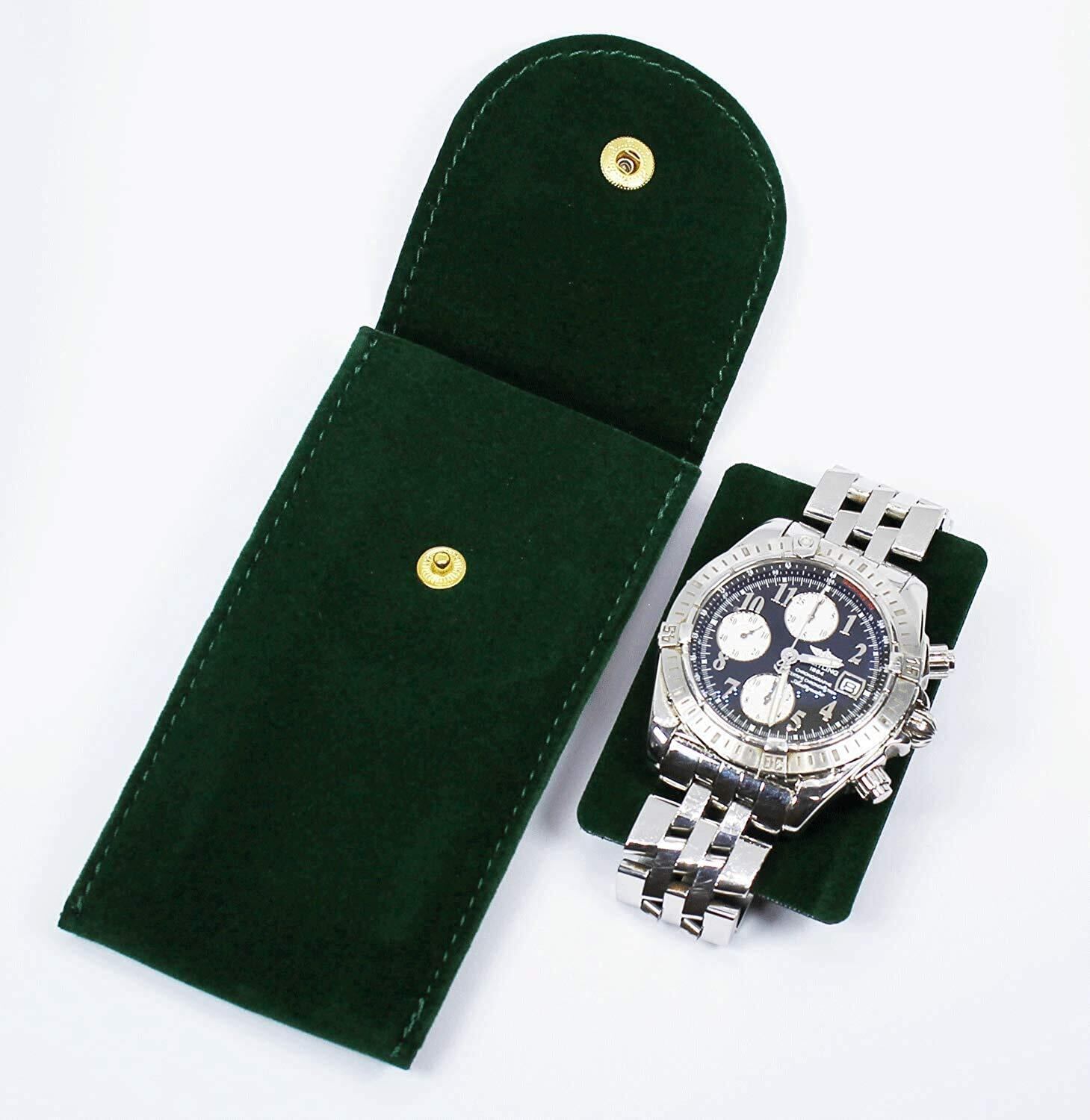 BestTown 1本用 腕時計ケース コンパクト 時計ポーチ スウェード調 時計収納 ウォッチケース 時計携帯 旅行・出張・持運び (ダークグリーン)