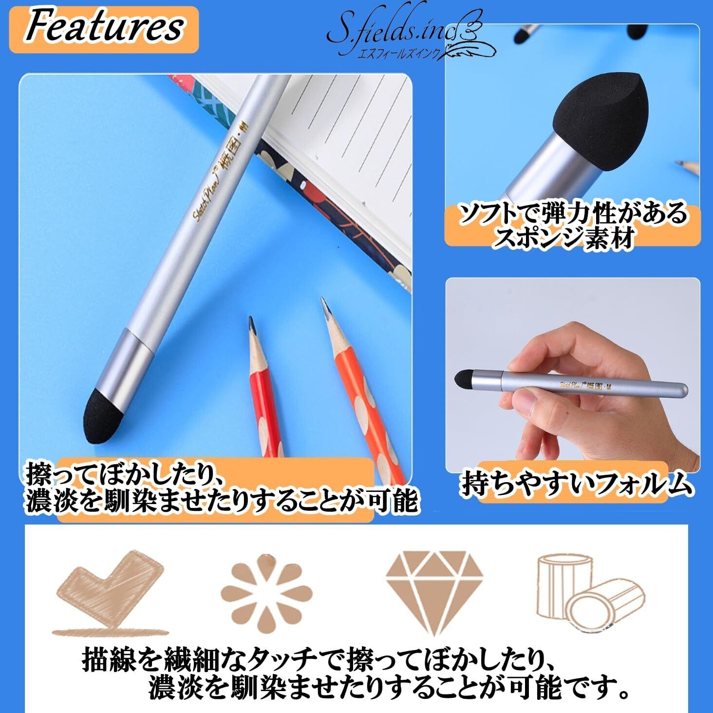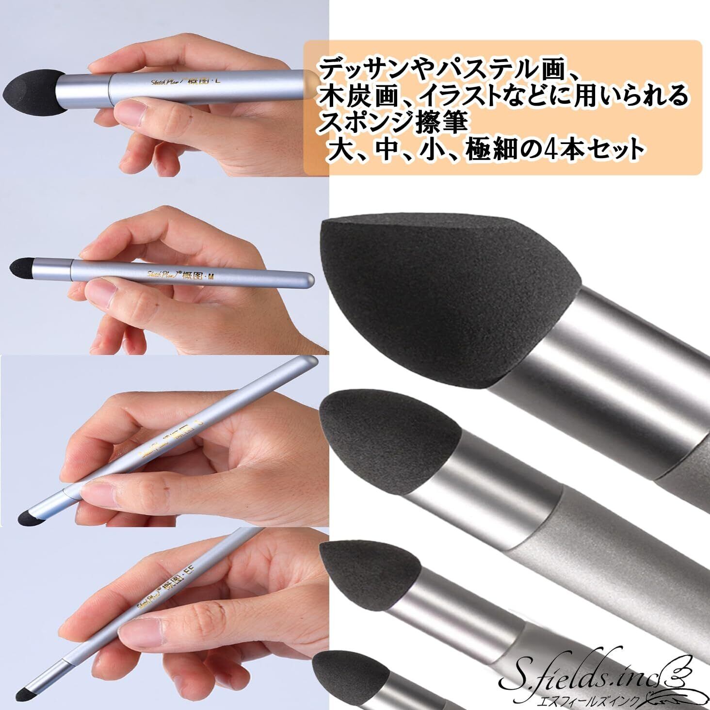 S.fields.inc スポンジ筆 擦筆 4本セット デッサン さっぴつ パステル画 クロッキー 木炭画