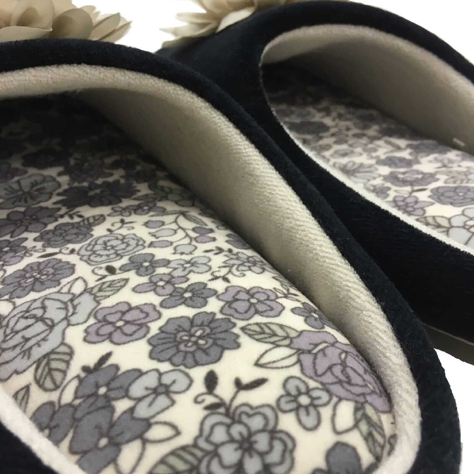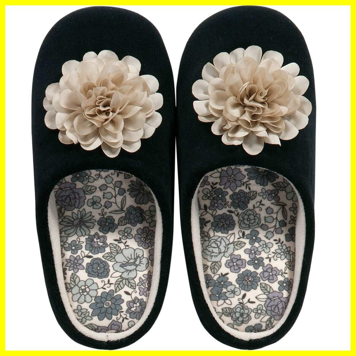 センコー(Senko) S.D.S シャーロット 花モチーフ付き スリッパ 約 24cm ブラック 低反発底 63192