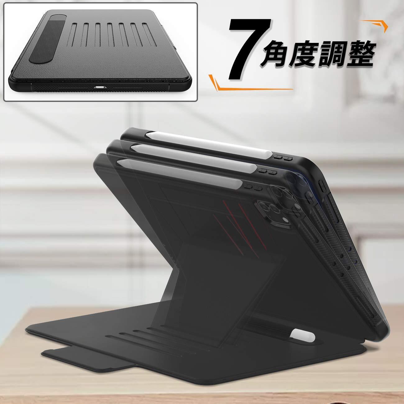 iPad Pro 11 ケース 2020 7つの角度に対応 オートスリープ/ウェイク カード収納 全面保護型 Pencilホルダー付 iPad Pro 11インチ 専用カバー (黒)