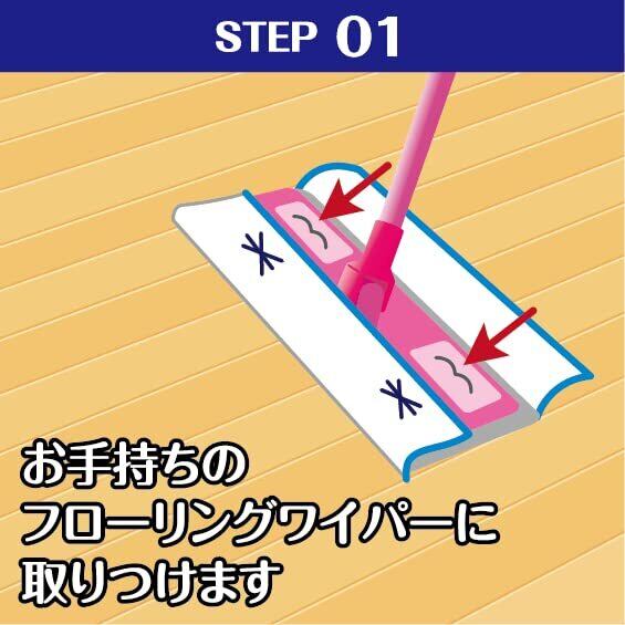 (2)お手持ちのフローリングワイパーに取り付けます。