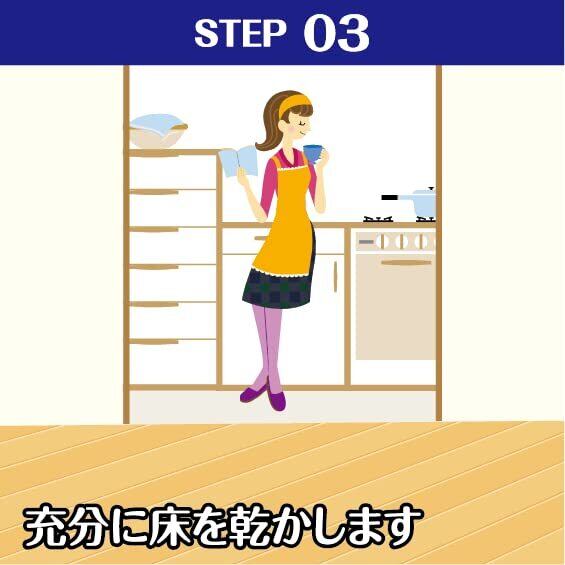 (4)床面が乾くまで放置します(使い終ったシートは捨ててください)。