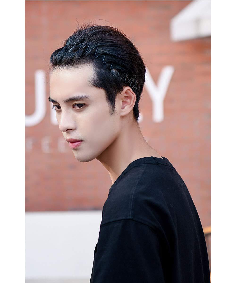 shefun メンズ カチューシャ スプリング ヘアバンド 鉄 波型 くし付き 黒 シンプル 前髪 髪飾り 2本セット JP171 (B)