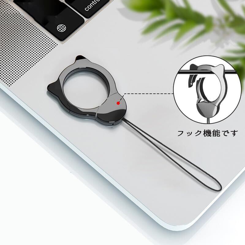 [YaoooosF] リングストラップ フィンガーストラップ スマホ ホールド ねこ 耳 落下防止 合金 吊下げひも スマホ ショルダーストラップ カラビナ スマホ フィンガー 携帯ストラップ フィンガーリング