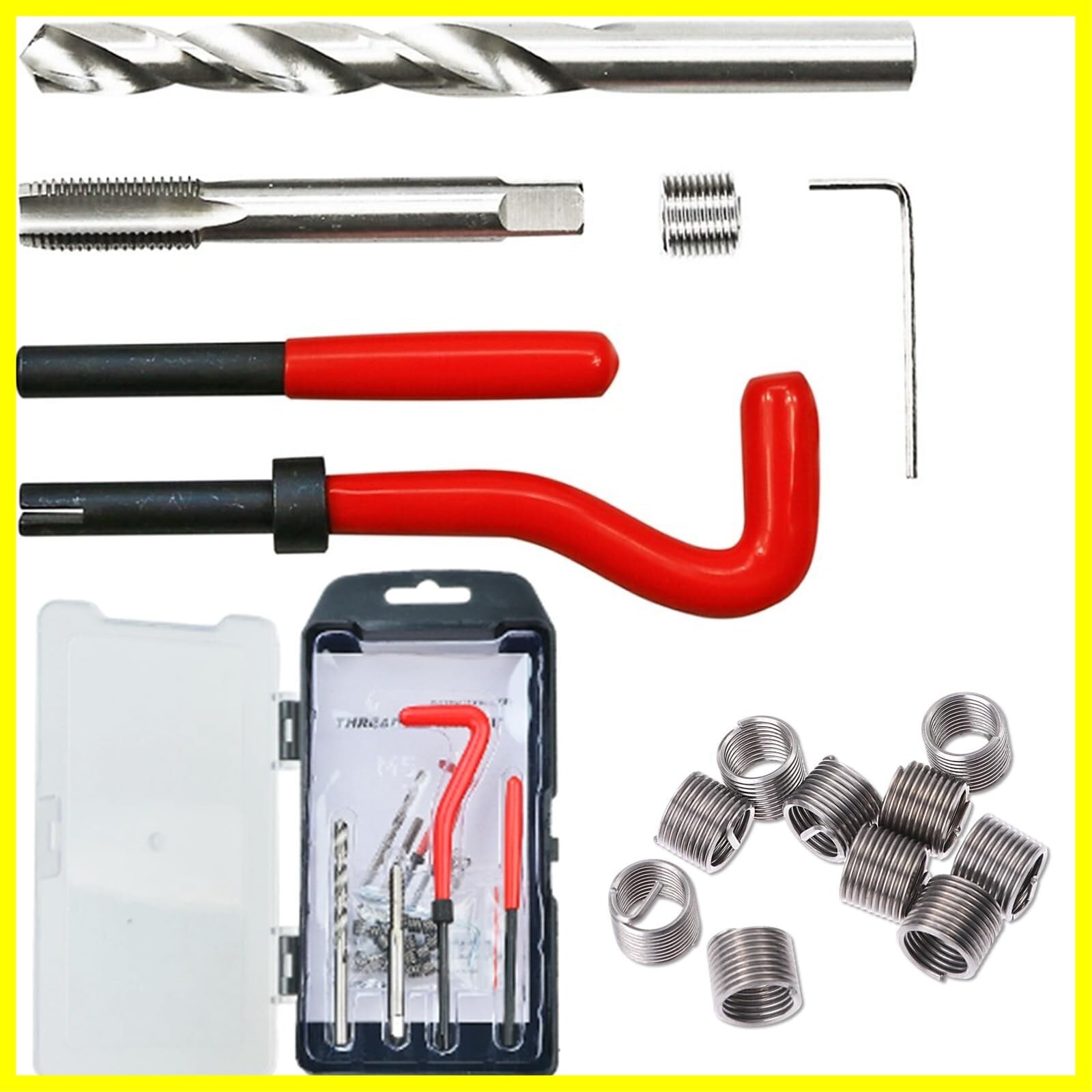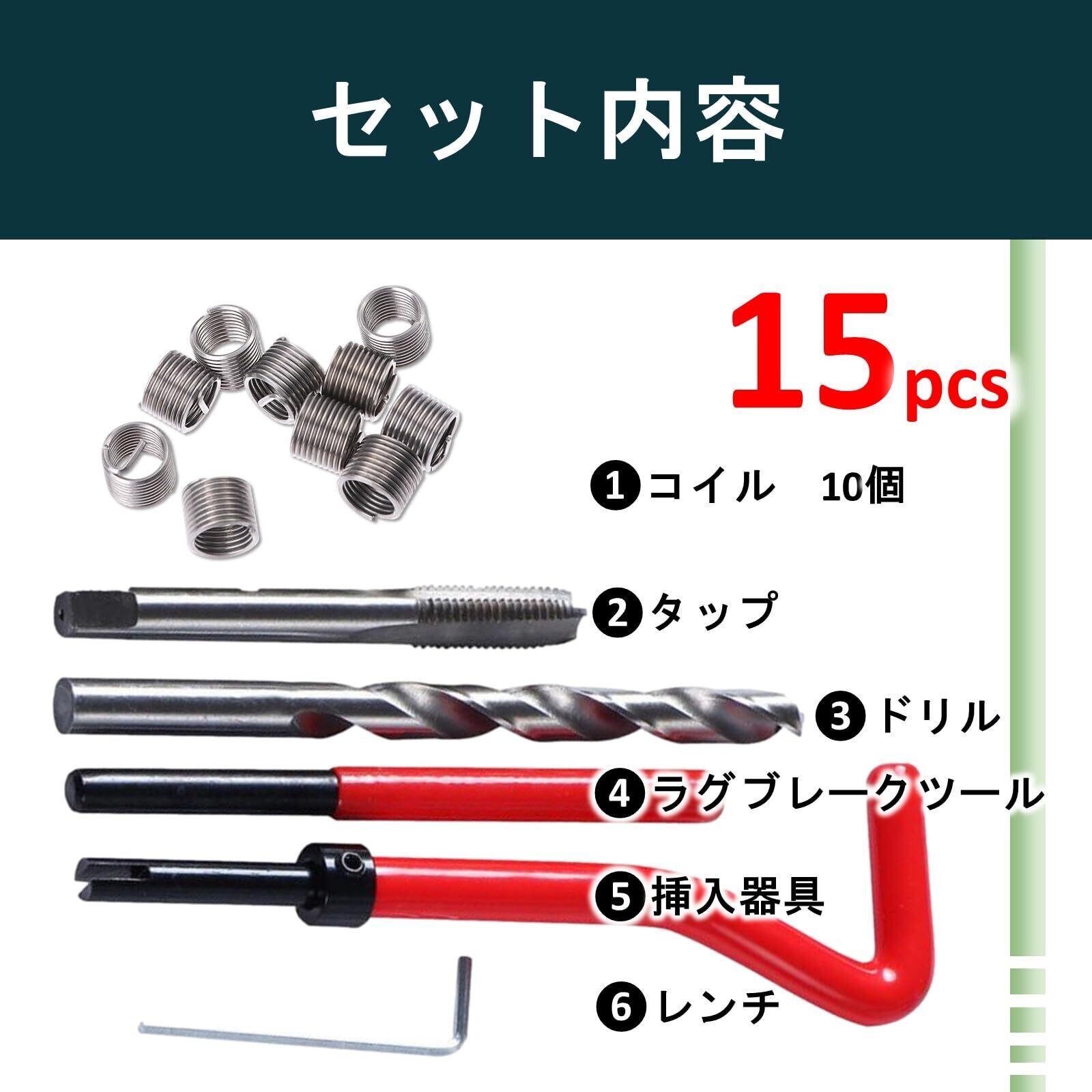 ルボナリエ リコイルキット ヘリサート ネジ穴補修 ネジ穴補修キット 修復ツール ネジ穴 リコイル 補修 ネジ山 再生 修復 ネジ山修正キット (レッド M8 1.25)