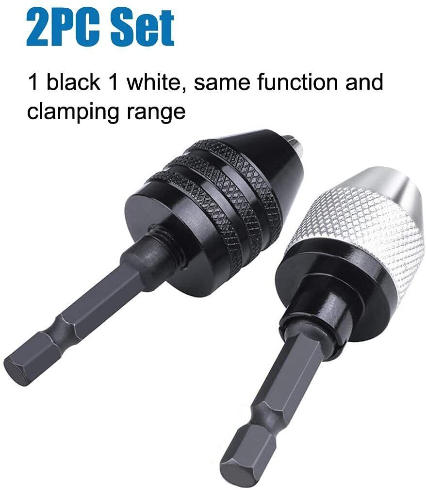 キーレスドリルチャック 2本組 ドリルチャックアダプター キーレス六角軸ドリルチャック キイレスタイプ 六角シャンク クイックチェンジドリルチャック インパクトドライバー対応型 電動ドライバー用 キィレスドリルチャック アダプター ハンマードリル用 全金属タイプドリルチャック キーレスドリルチャックアダプターセット 鉄工錐用 インパクトドライバー用 6.35mm軸 電動工具アクセサリー(0.3~6.5mm,0.3~6.5mm)