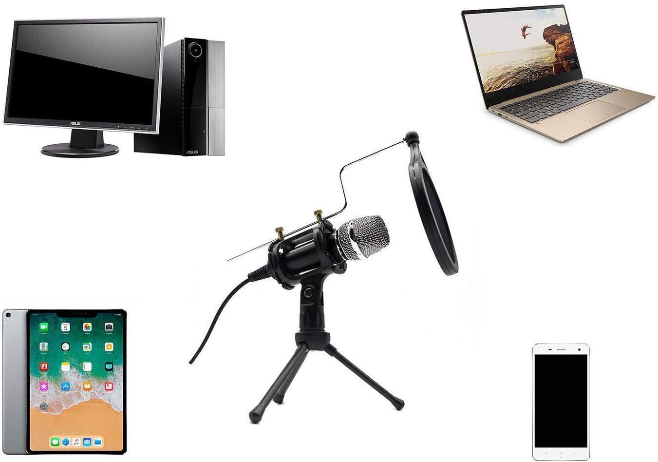 マイクコンデンサマイク スマホ マイマイク ゲーム実況 スタンドマイク スマホマイク マイクロフォン 小型 集音マイク 全指向性 生放送 集音 録音 会議用 カラオケ機器 (ブラック)