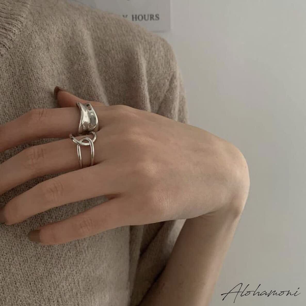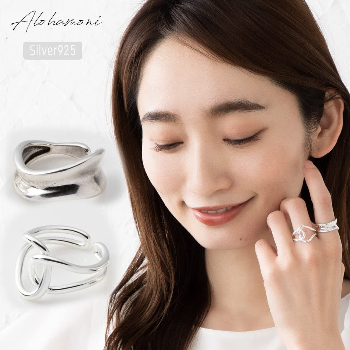 アロハモニ ヴィンテージ リング 2点セット カーブリング & チェーンリング シルバー リング シルバー925 指輪 チェーン 鎖 フリーサイズ レディース 韓国 オルチャン