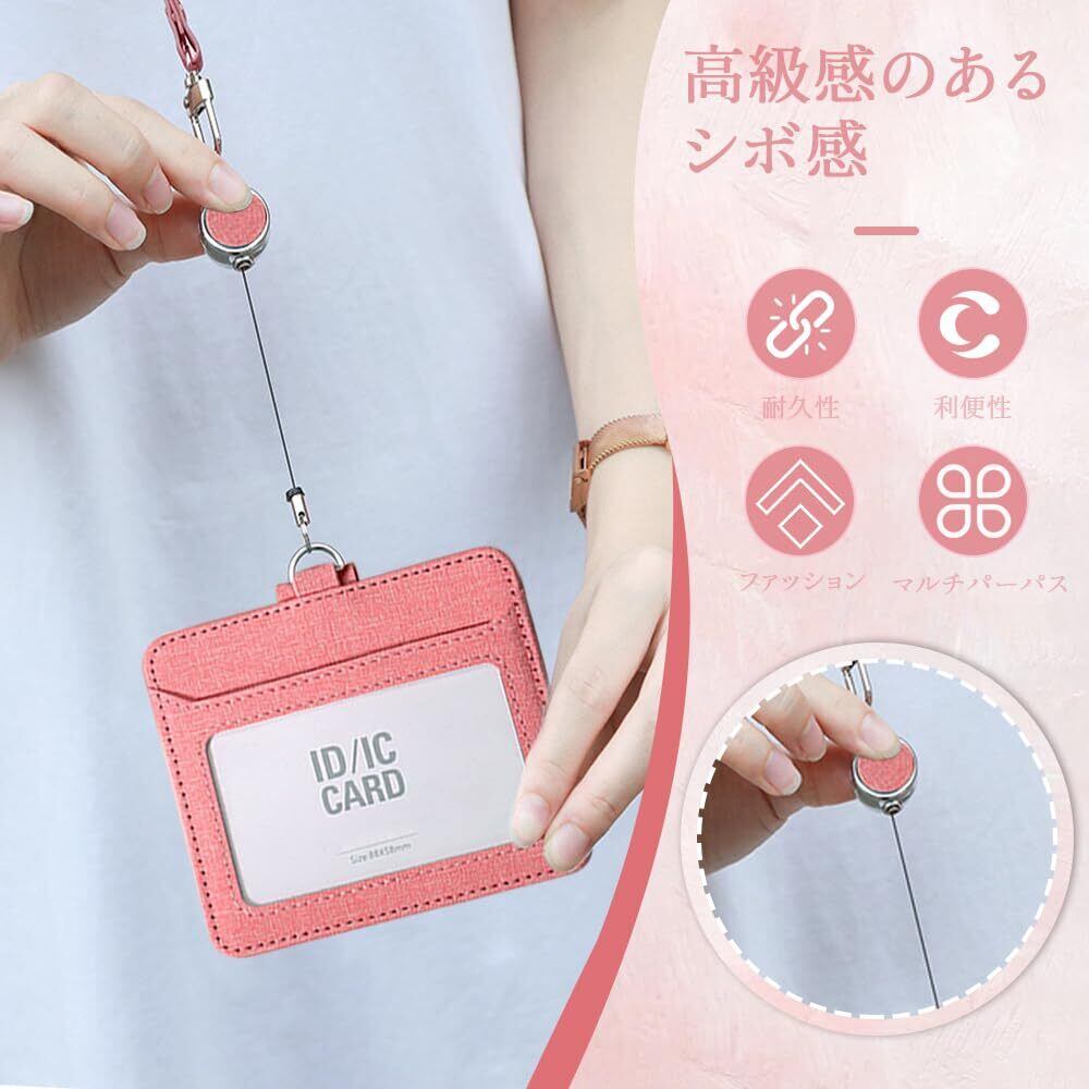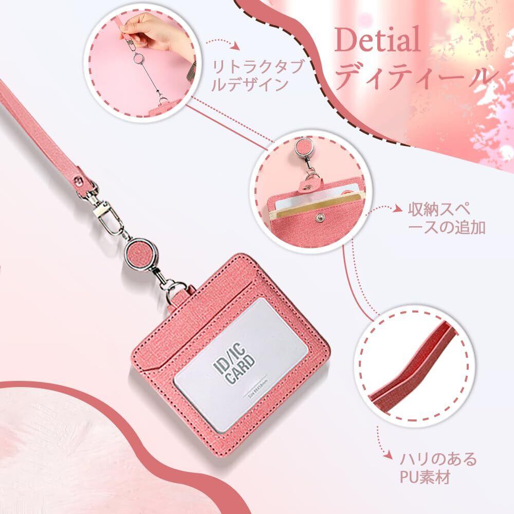 IDカードホルダー パスケース リール付き レディース IDケース 首掛け ストラップ付 定期入れ 社員証ホルダー ケース 社員証 入館証 定期入れ (Pink)