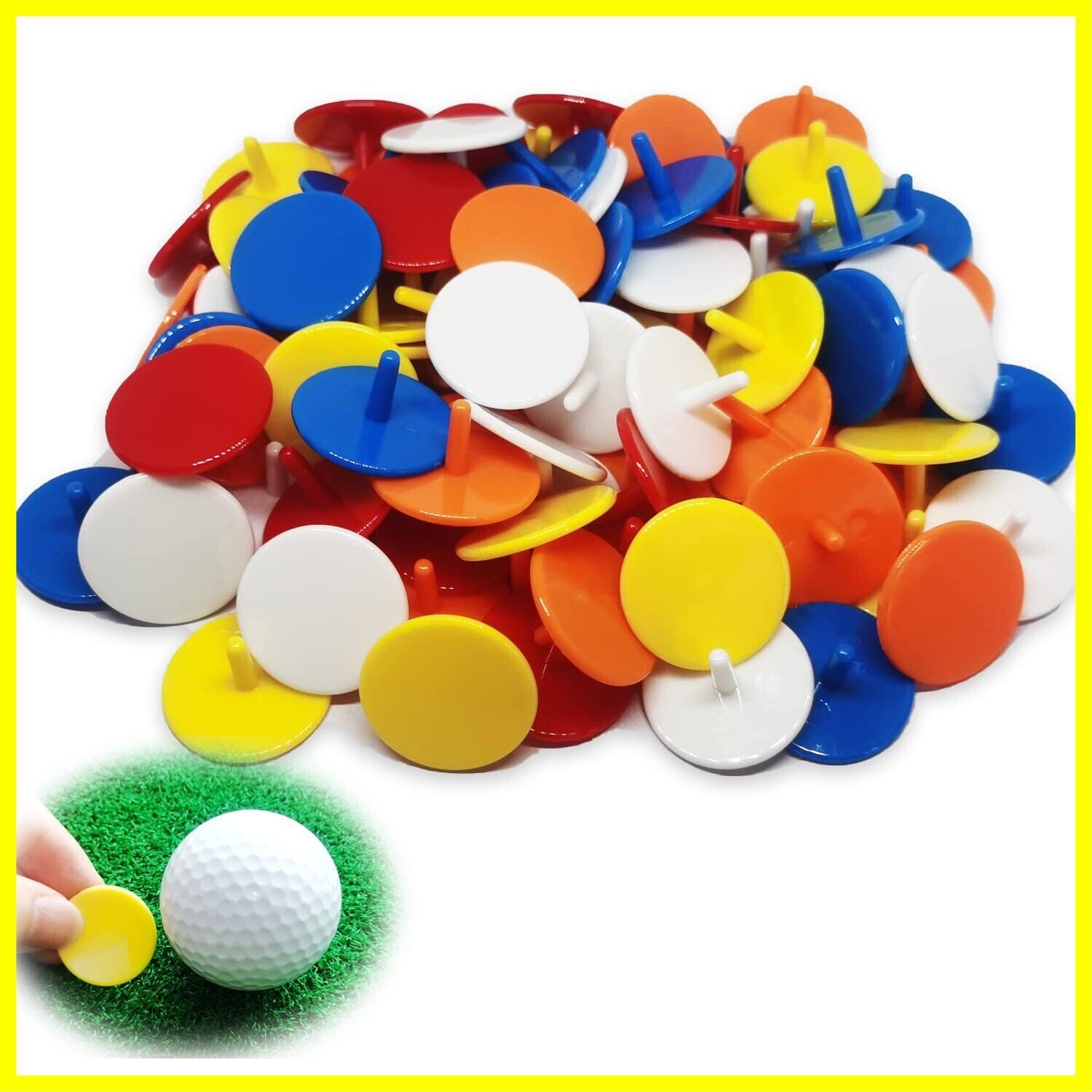 Adhere ゴルフ マーカー 50 個入 プラスチック製ゴルフボールポジションマーカー25mmフラットゴルフマーカーアクセサリー各種色混合