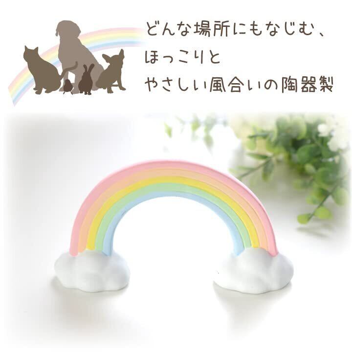 虹の橋のあの子に想いを馳せて飾りたい、陶器製のかわいい虹のオブジェです。