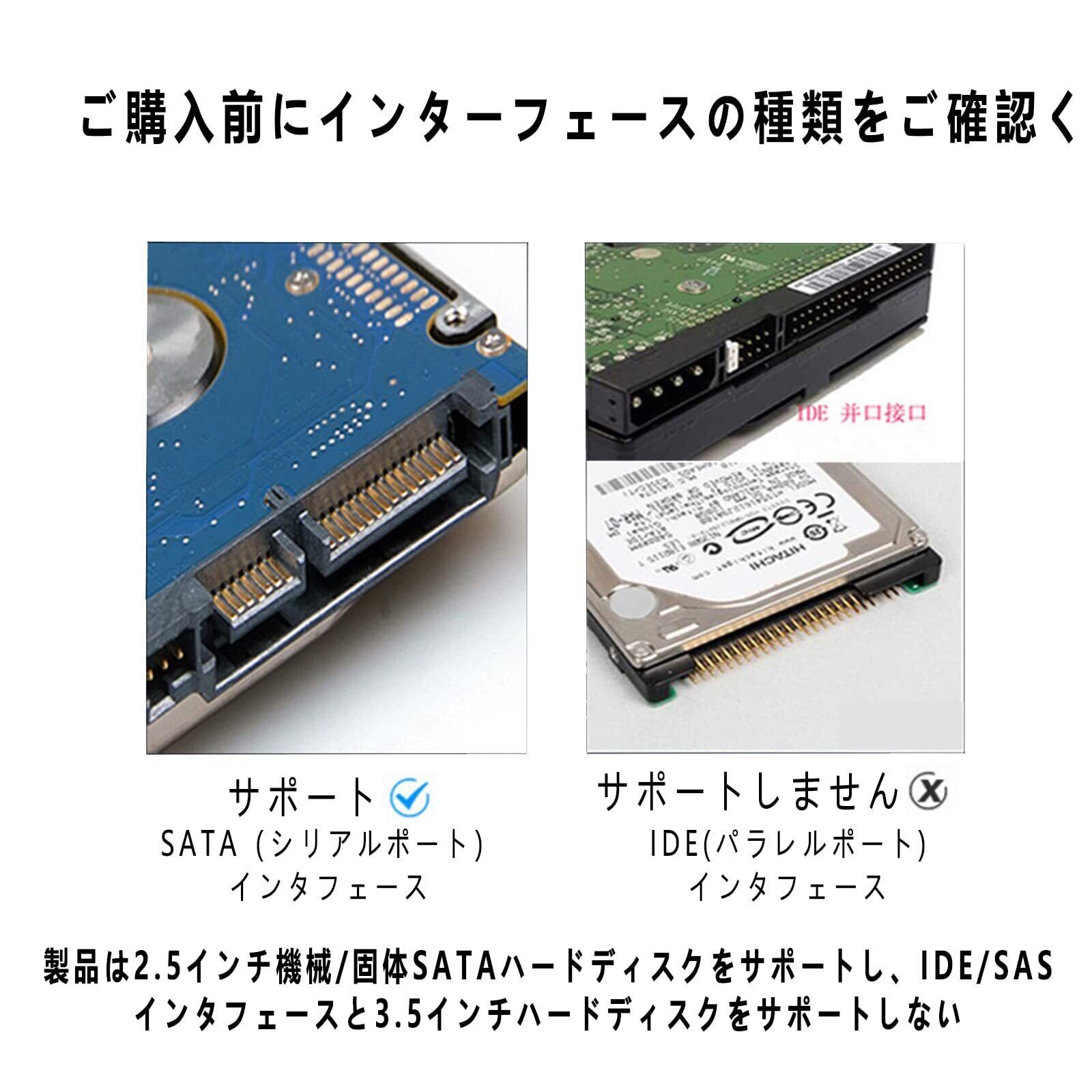 【ご注意】3.5インチハードドライブには使用できません、2.5インチのSSD、HDDのみ対応します。 ATA(IDE)、MSATA、およびM.2インターフェイスとは互換性がありません。ご購入前にハードドライブの種類をご確認ください。