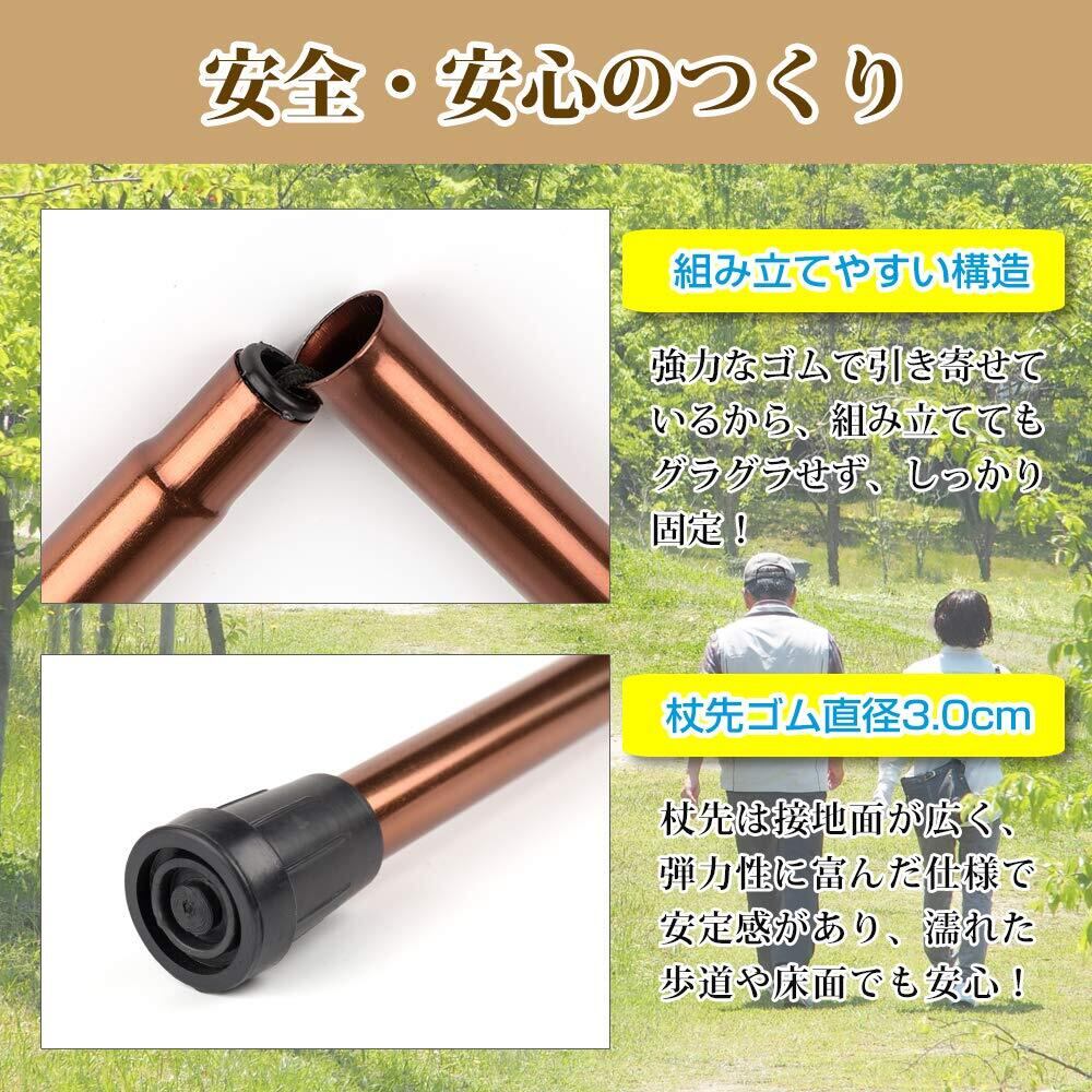 長さ調整機能があり、身長に合わせて調整することができます。シャフトはアルミ製で太身の19mmシャフトを使用。グリップには滑りにくい素材を採用し、握りやすく手に馴染みます。散歩、ウォーキング、ハイキング、登山等用途は色々。旅行中に鞄に入れておくと安心です。お年寄り、車椅子、膝や足の不自由な方、腰痛、怪我、足腰の負担を軽減したい方、敬老の日のプレゼント等に。