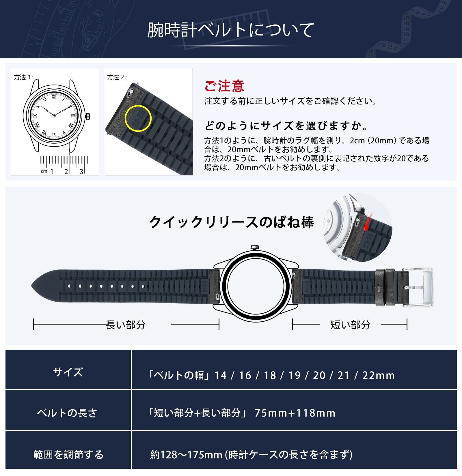 【ユニークでエレガントなデザイン】内側の層が通気チャネル付きのラバーで作られた時計のベルトトデザインは、汗を逃がすことができます。ラバー製の裏地はエクササイズやアクティブなライフスタイルに最適であり、外側のレザーはよりフォーマルな場に上品さを加えます。このハイブリッド腕時計バンドは耐久性とエレガンスを兼ね備えています。