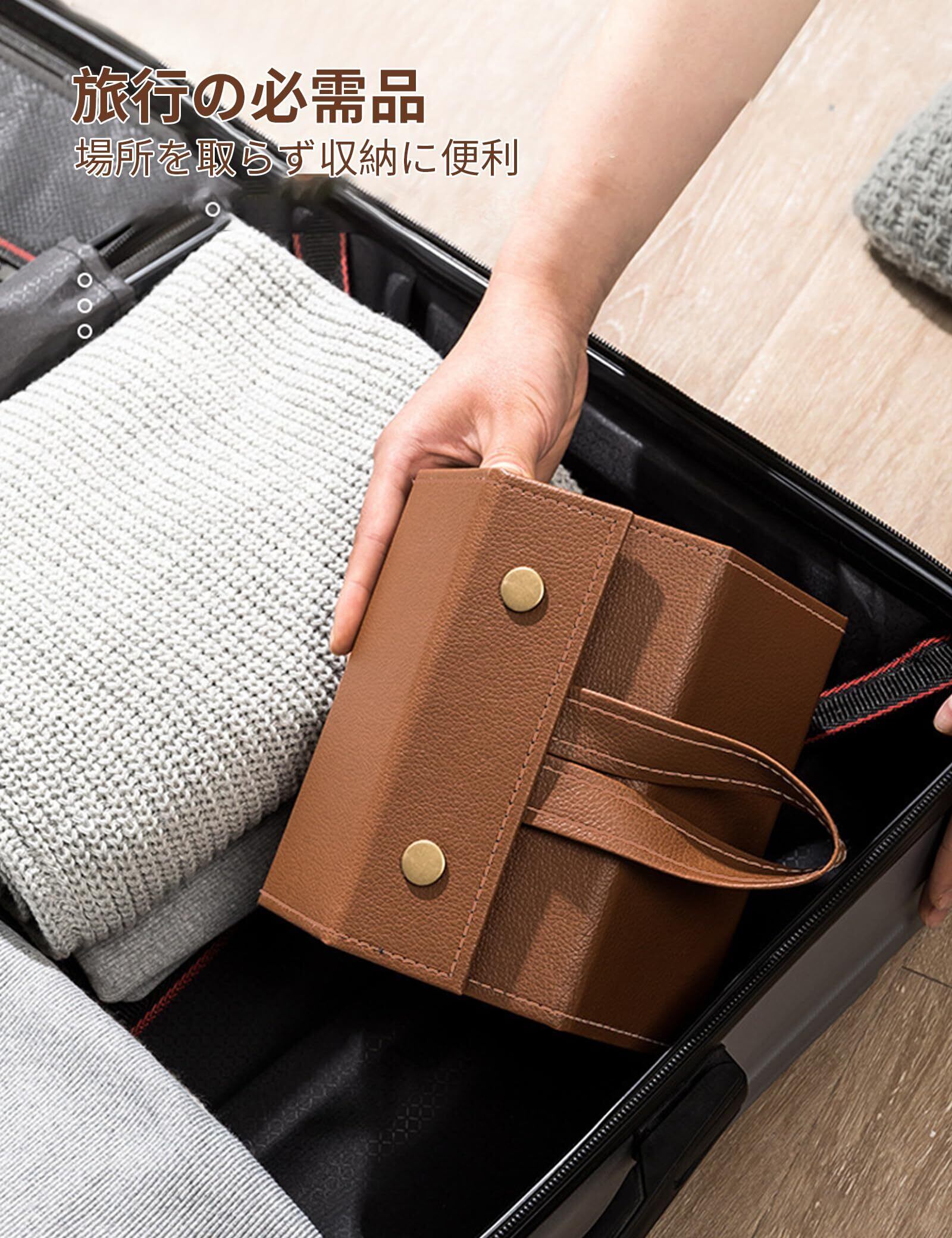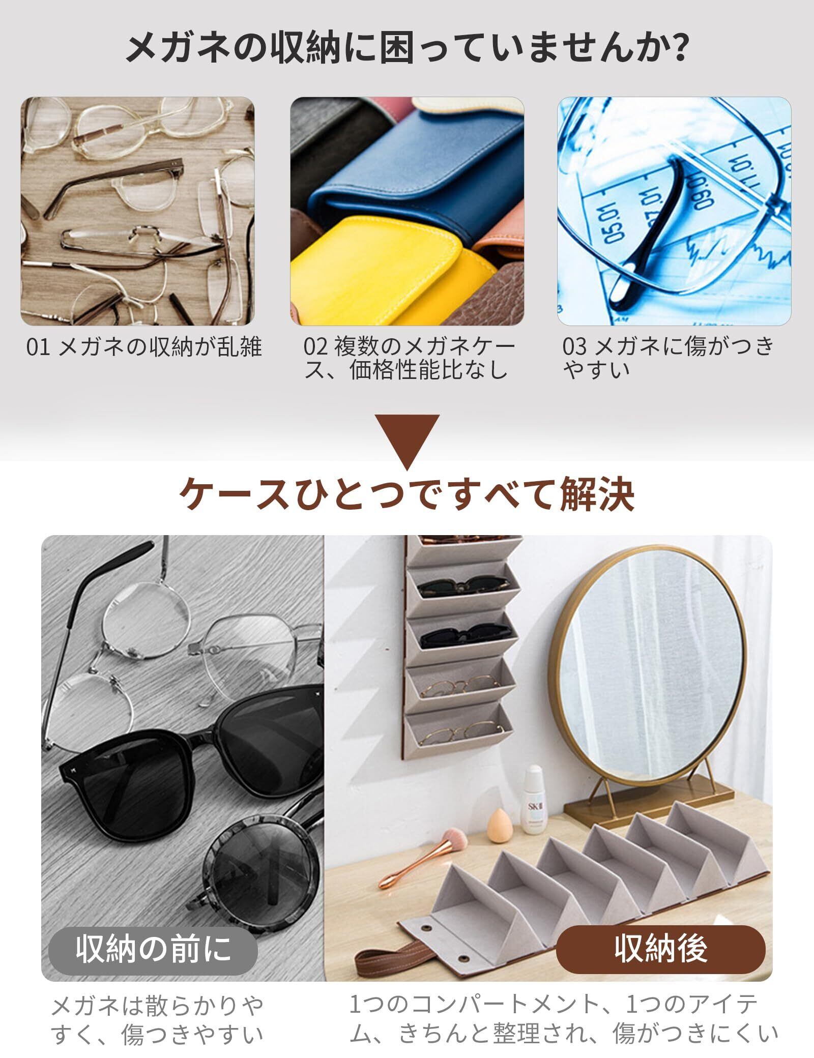 【多機能デザイン】折りたたみ式デザイン。メガネケースは折りたたむことができ、外出時に複数のメガネを収納することができます。持ち運びやバッグに入れてもかさばりません。壁掛けデザイン。端のストラップで壁に掛けられるので、自宅でのメガネ収納も簡単です。いつでも出し入れでき、インテリアにもなります。