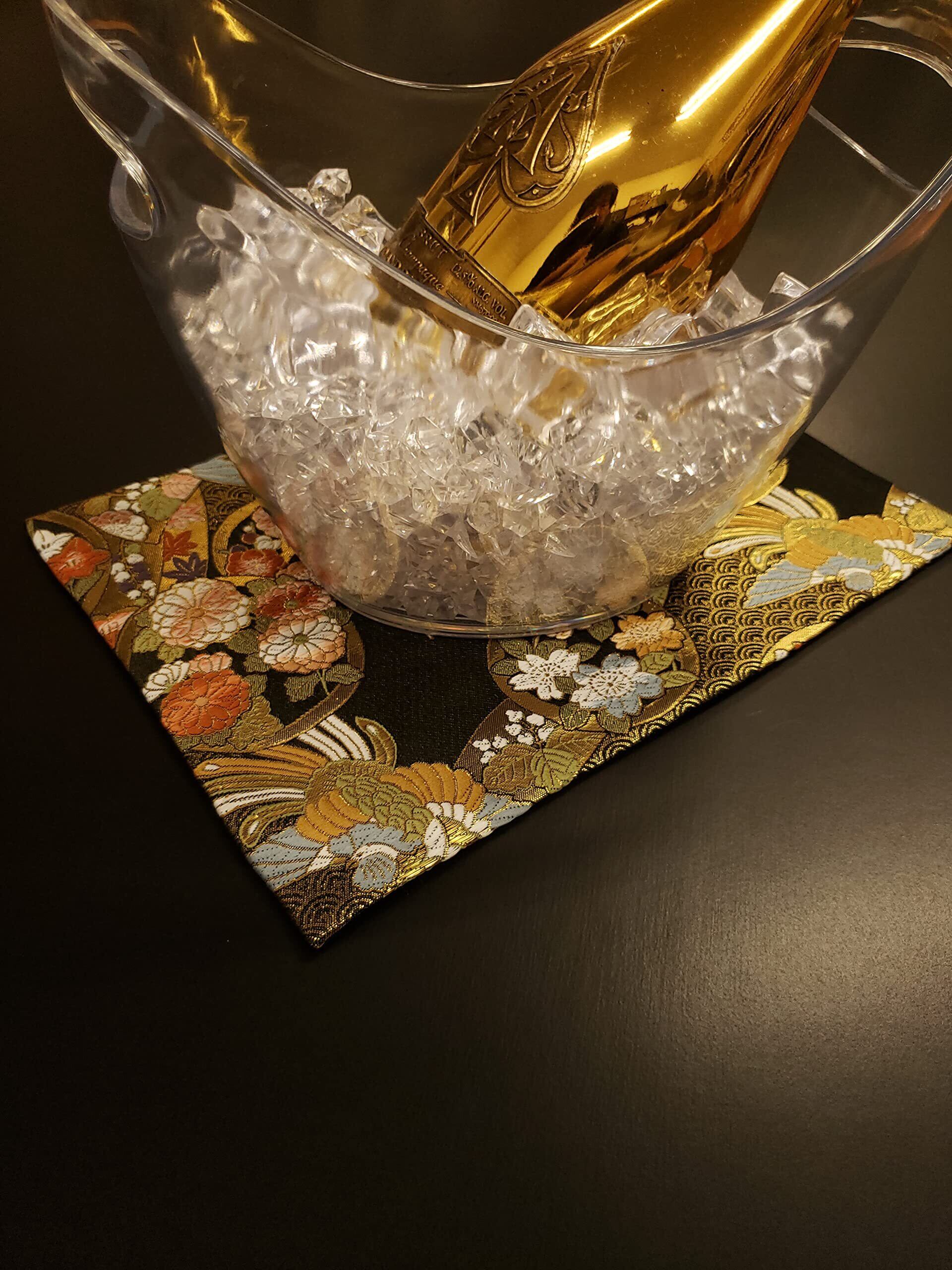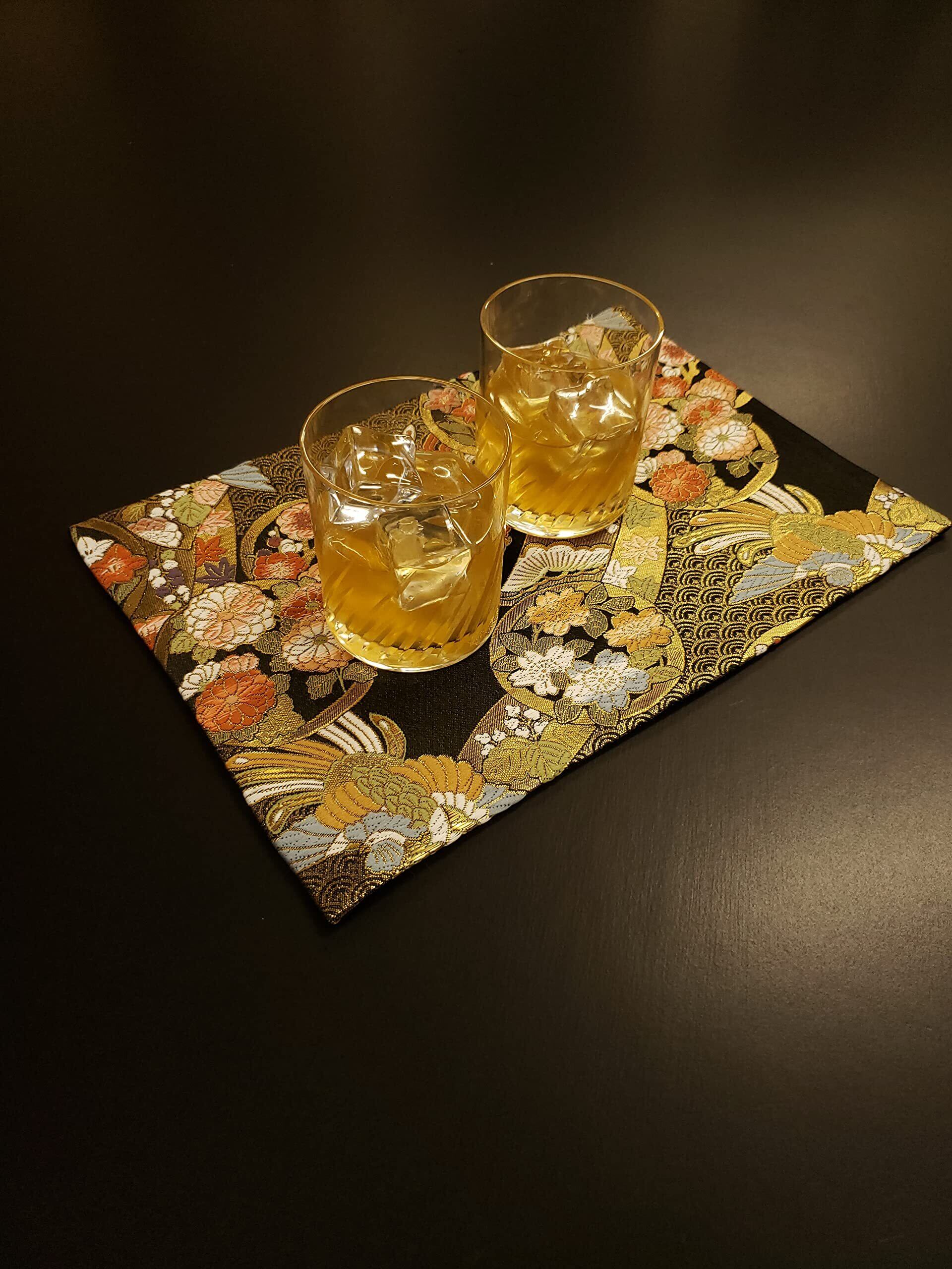 帯を思わせる華やかな金襴織物を使ったティーマットペアセットです。