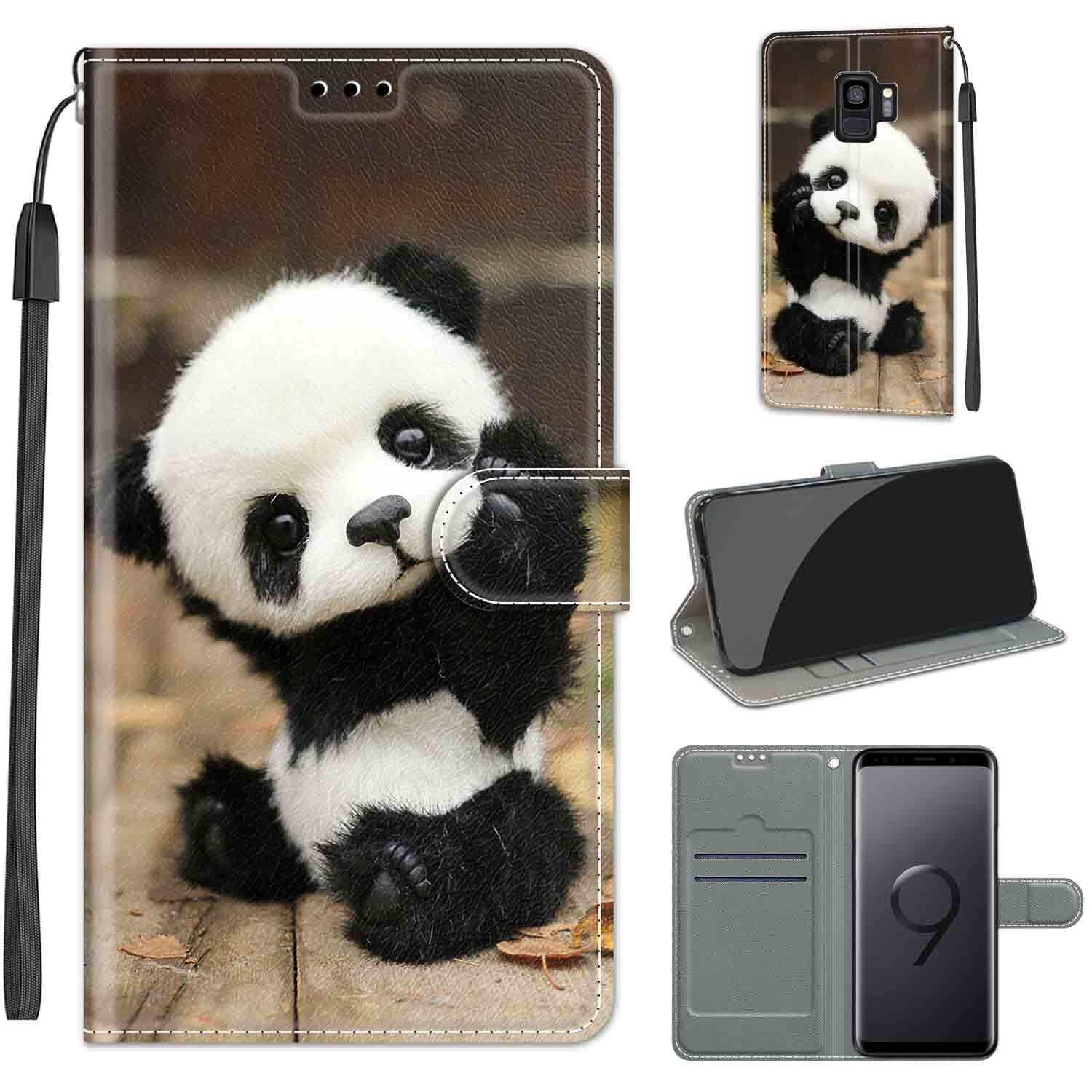 KENHONER Galaxy S9 ケース SC-02K SCV38 ケース 手帳型 対応 Galaxy S9 カバー Galaxy S9 手帳ケース サムスン ギャラクシー S9 ケース スマホケース 内蔵マグネット 携帯カバー カードポケット スタンド機能 落ち着いた色 軽量 便利 パンダ