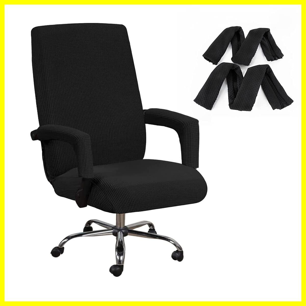 オフィス椅子カバー チェアカバー オフィスチェアカバー 椅子カバー イス 椅子 いすカバー オフィス用 イスカバー パソコンチェアカバー オフィスチェア 肘掛けカバーが付 伸縮素材 背もたれあり 洗濯可能 取り外し可能 (ブラック, Large)