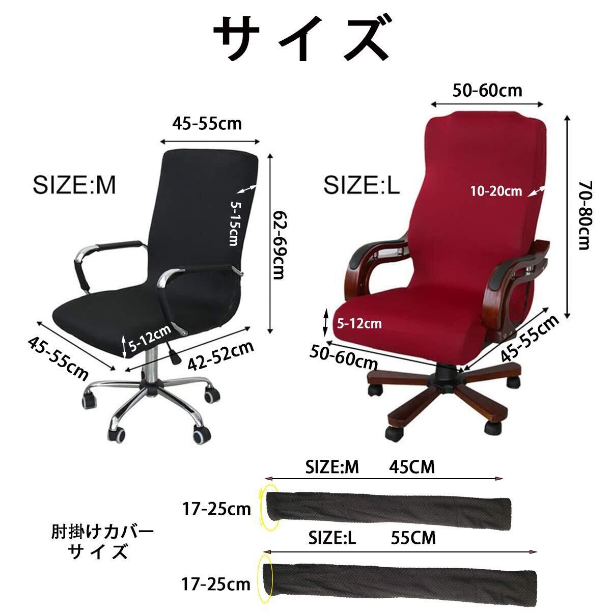 【椅子カバーサイズ】:M:背もたれの高さ:62-69cm、背もたれの幅:45-55cm、座面幅:45-55cm 、座面幅:42-52cm L:背もたれの高さ:70-78cm、背もたれの幅:50-60cm、座面幅:45-55cm 、座面幅:50-60cm