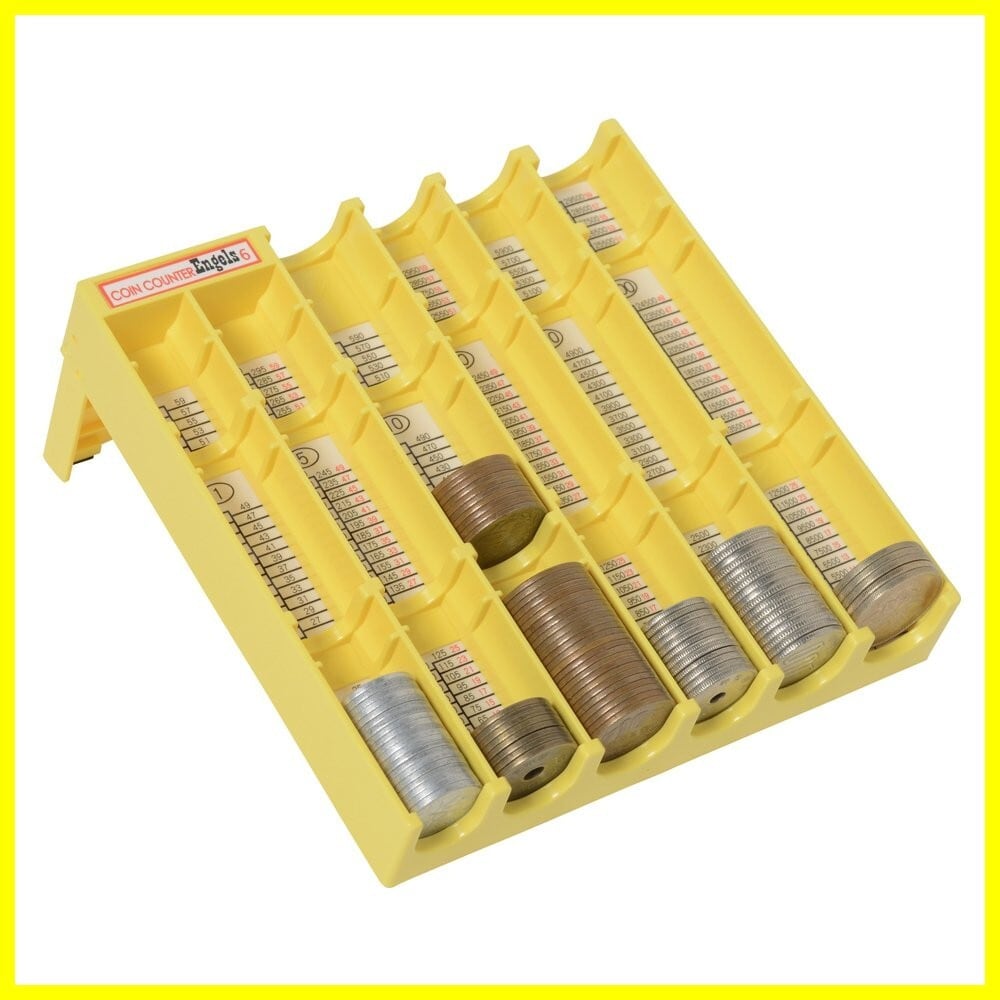 スタンド部分が折り畳めるコンパクトでカラフルなコインカウンター。