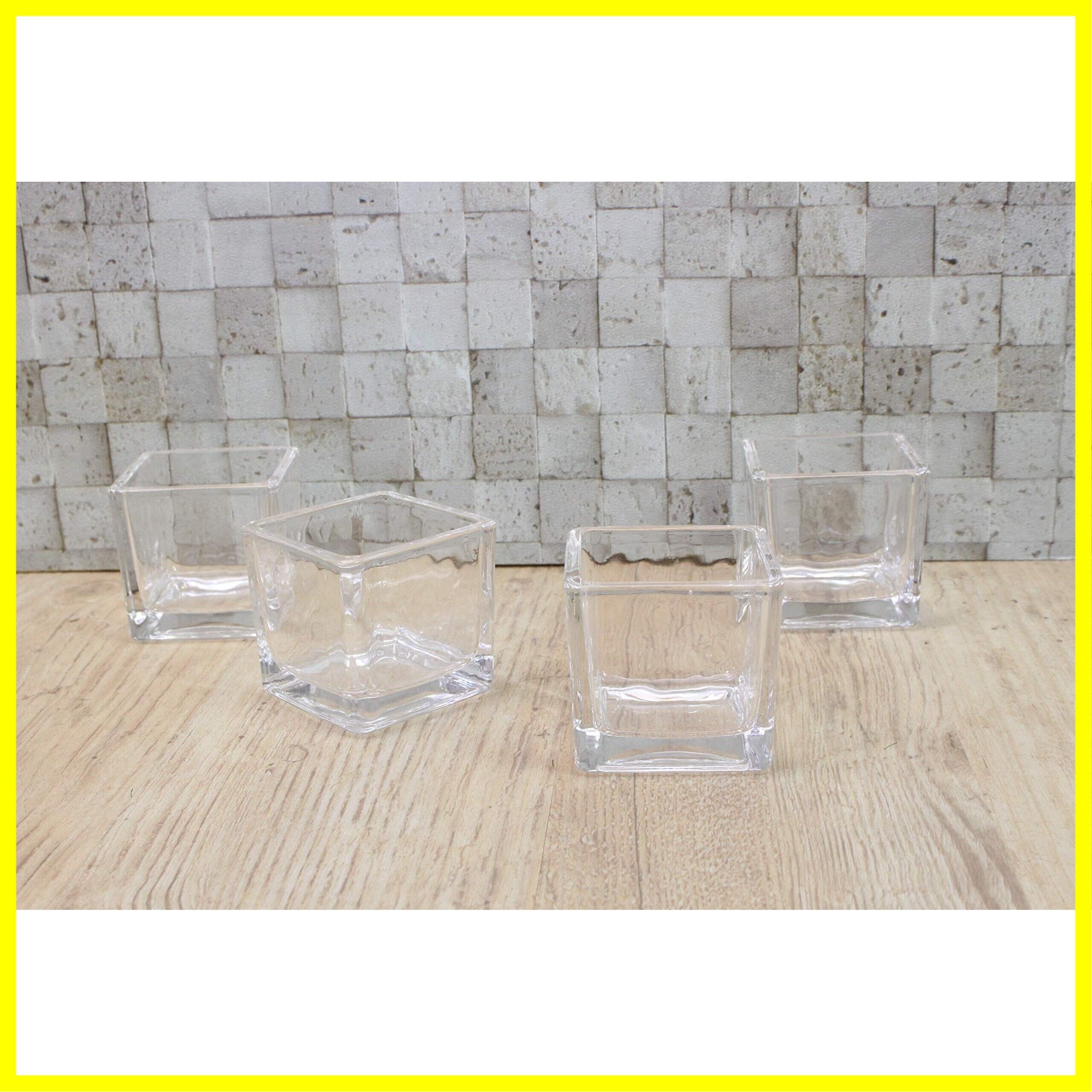 キャッスルエンタープライズ(Castle Enterprise) 【業務用 セット】フラワーベース キャンドルホルダー ガラス ブロック S H5×W5×D5cm 4個入り