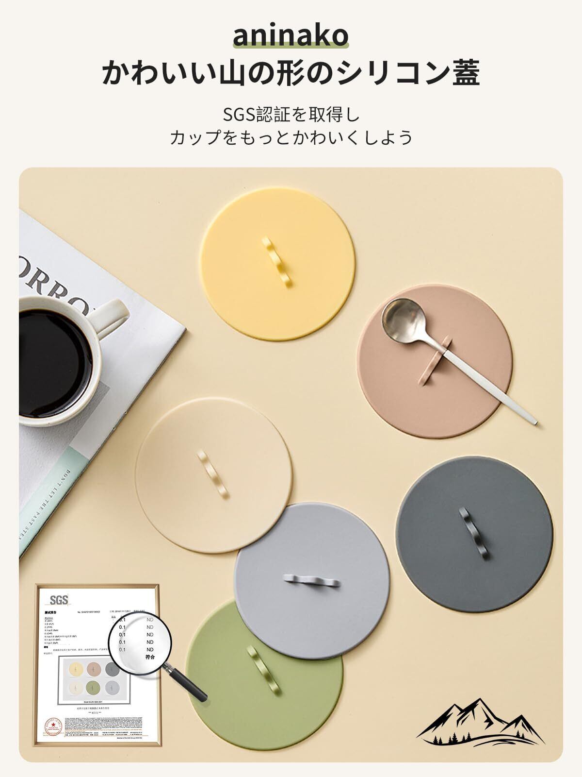 aninako マグカップ カップカバー 2個 かわいい山の形 シリコン 蓋 耐冷 耐熱 漏れ防止 気密シール 防塵 再利用可能 食洗機対応 カップ保温 可愛い コップ蓋 ティーカップ (オフホワイト+薄黄色)