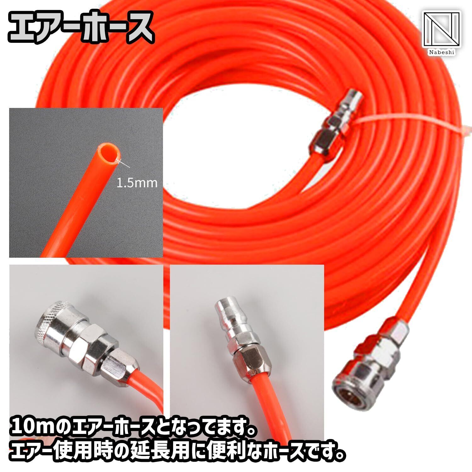 【エアーホース】10mのエアーホースとなってます。エアー使用時の延長用に便利なホースです。