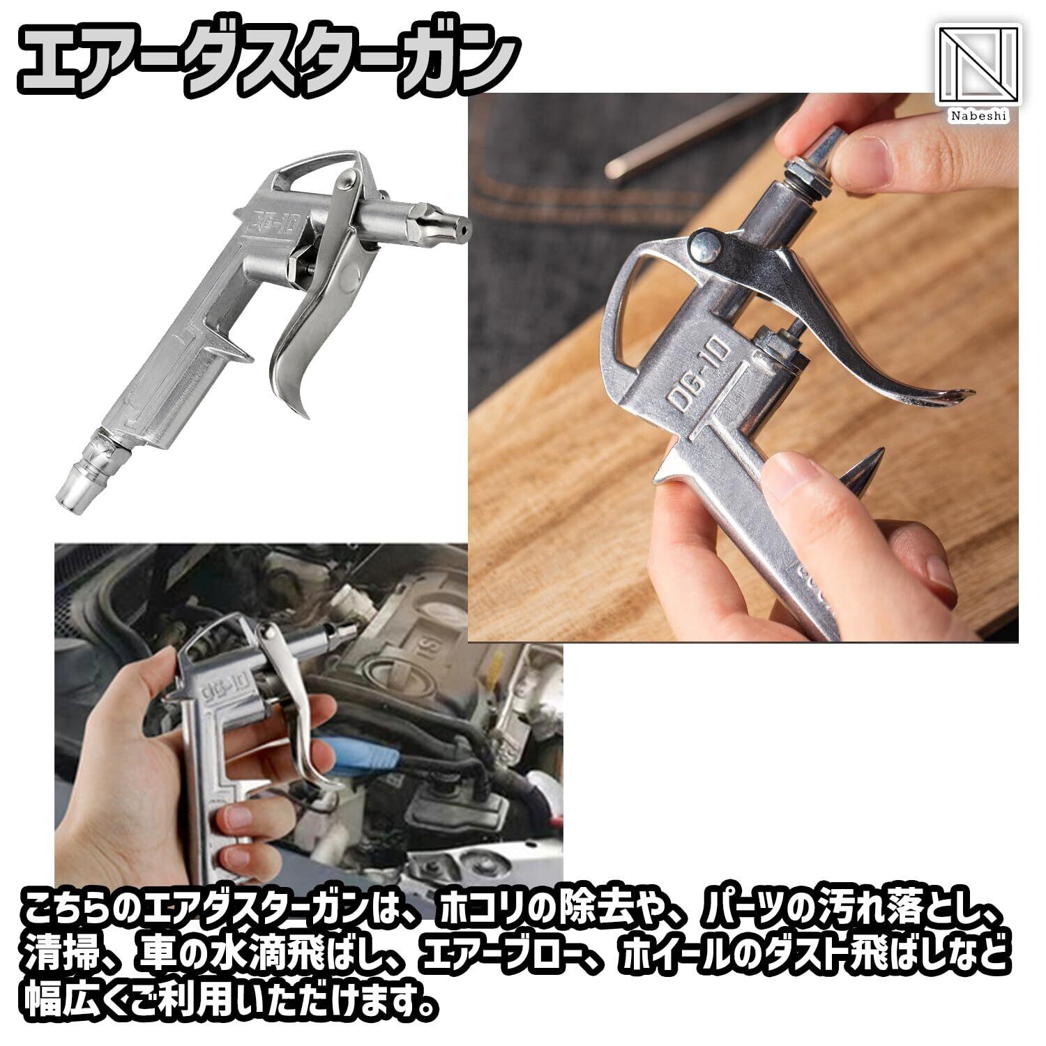 【エアーダスターガン】こちらのエアダスターガンは、ホコリの除去や、パーツの汚れ落とし、清掃、車の水滴飛ばし、エアーブロー、ホイールのダスト飛ばしなど幅広くご利用いただけます。