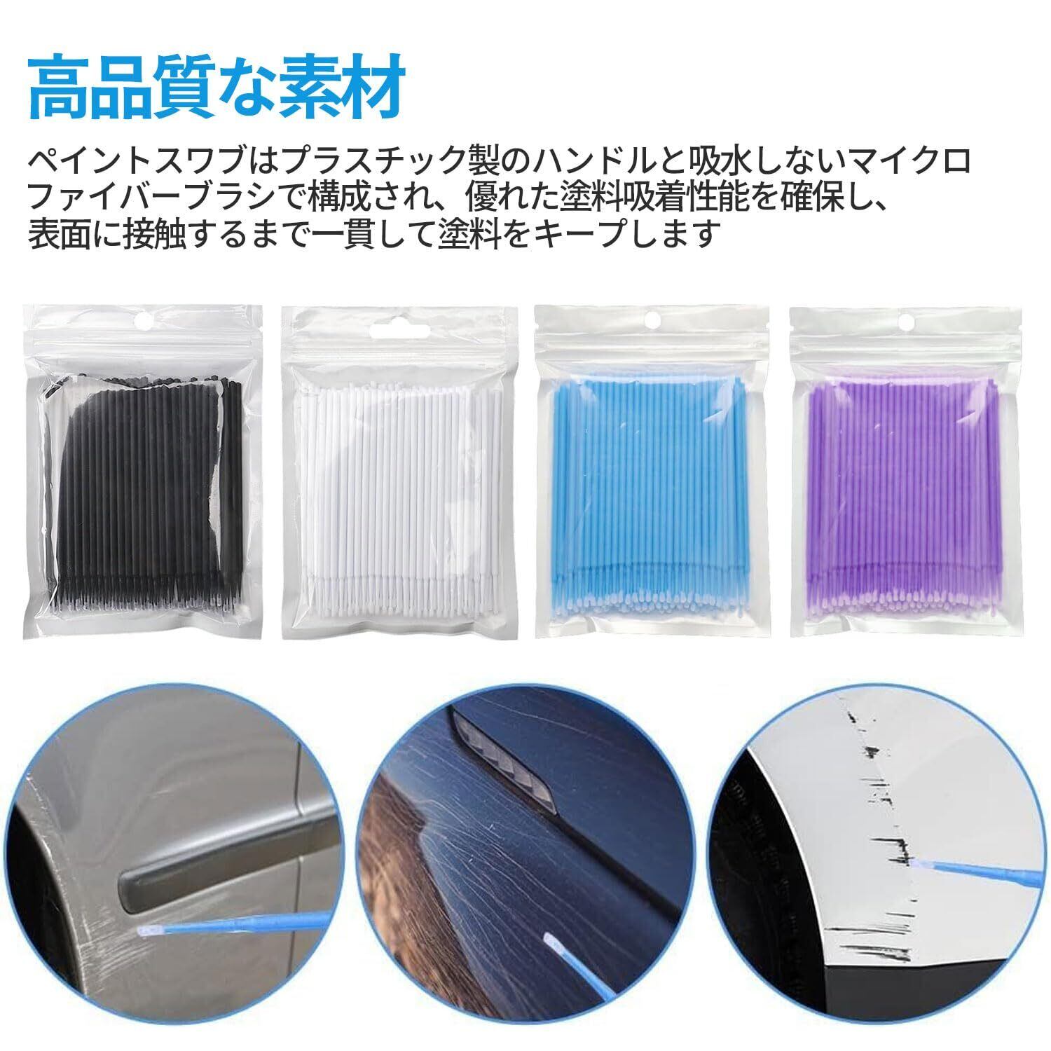 【4種類の規格】綿棒は直径の異なる4種類の規格があり、青色大、黒色中、白色中、紫色小があり、軽い傷、エッジの損傷、石の跳ね返りの損傷を修復するのに最適です。
