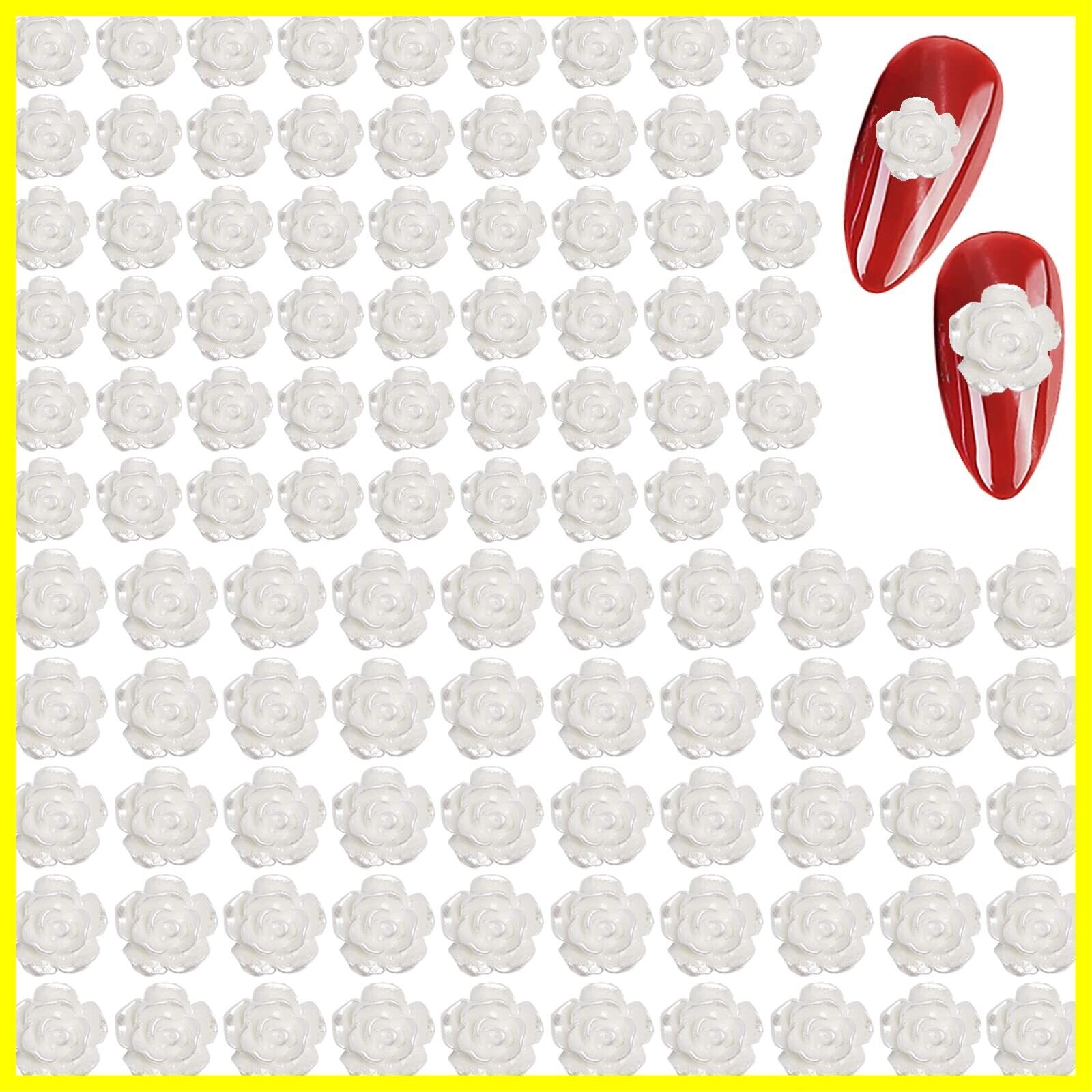 ネイルパーツ 花 200個セット 立体 白い花 パール風 バラ カメリア 椿 3dパーツ 6mm 8mm ホワイト お花パーツ デコパーツ ジュエリーパーツ ネイルアート ジェルネイル レジン (ホワイト)