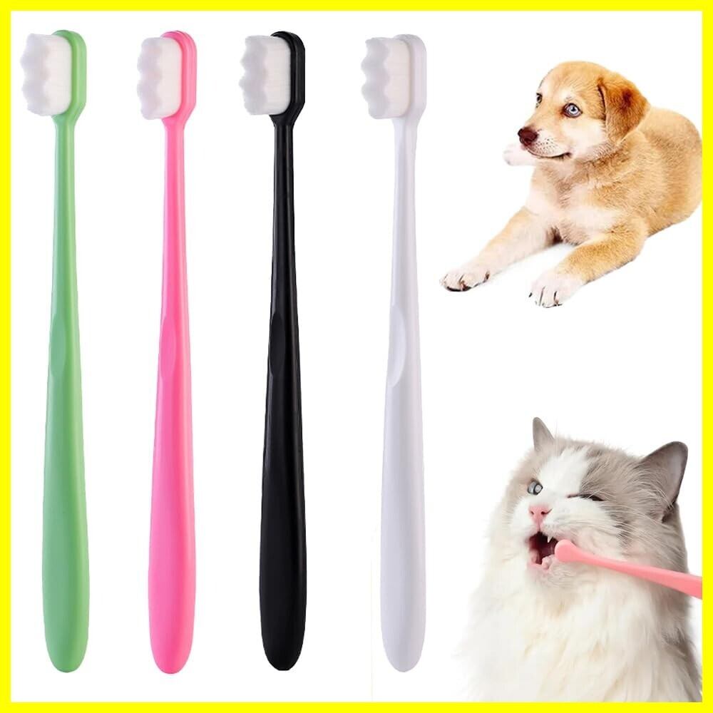 YUHENGCT 犬 歯ブラシ 超極細毛 小型犬 10000本の超極細毛 柔らかく 歯茎に優しい ペット用 食品グレード 抗菌抗ウイルス素材 歯周病 口ケア【犬用・猫用・4本入り】