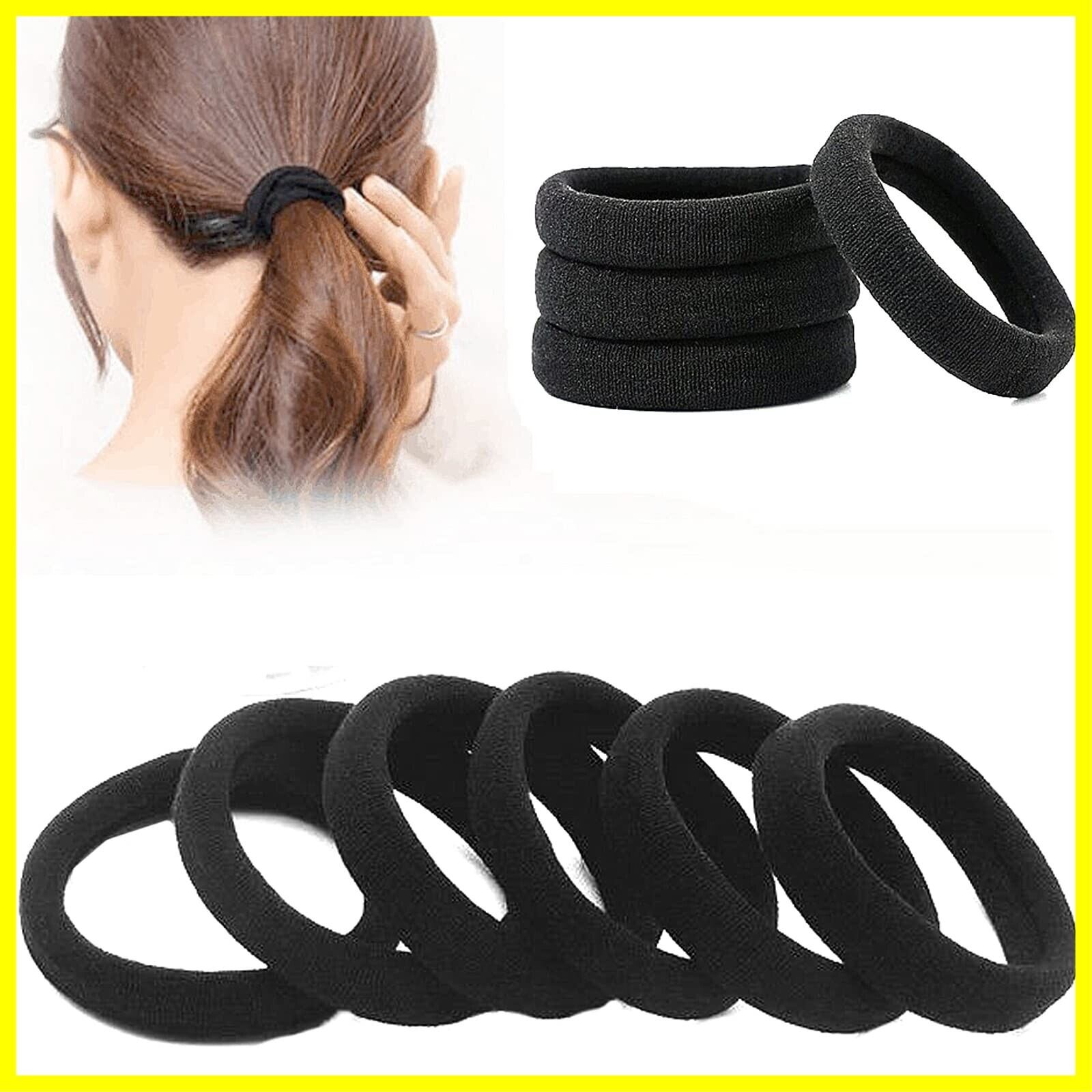 ポニーテール ヘアゴム 50個セット 太め 結び目なし リングゴム 洗える 輪ゴム ラージストレッチヘアネクタイヘア 太くて重い巻き毛用 (ブラック)