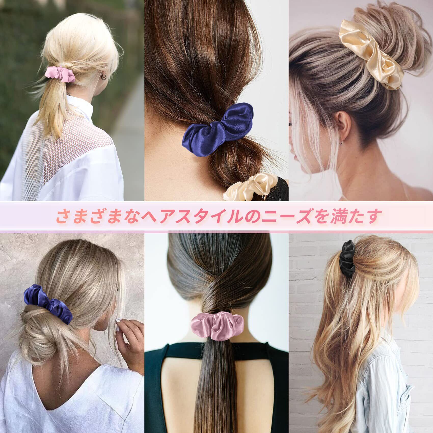 ✿【高品質のシルク】シルクヘアゴムは、高品質のシルクでできており、光沢があり、滑らかな手触りです。柔らかく快適で、伸縮性があり、髪をしっかりと保持し、髪を傷つけず、着用しやすいです。シルクヘアゴムのシルクの滑らかな表面は、髪が引っかかる可能性を減らします。耐久性も高く、長期間の使用でも問題ありません。