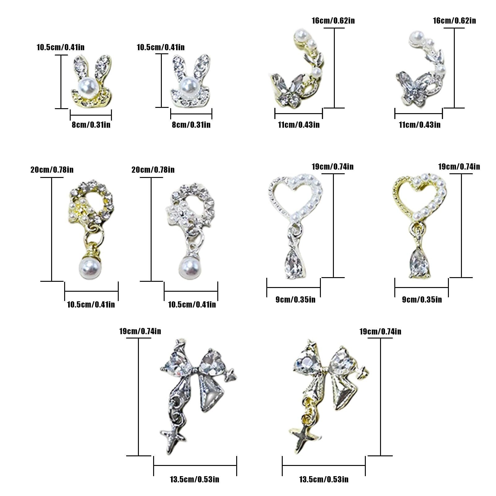 【揺れるネイルパーツ】ウサギ、蝶々、リボンなどさまざまなデザインのネイルパーツが揃っています。シルバーとゴールドをご用意して、ネイルのワンポイントにぴったりです。