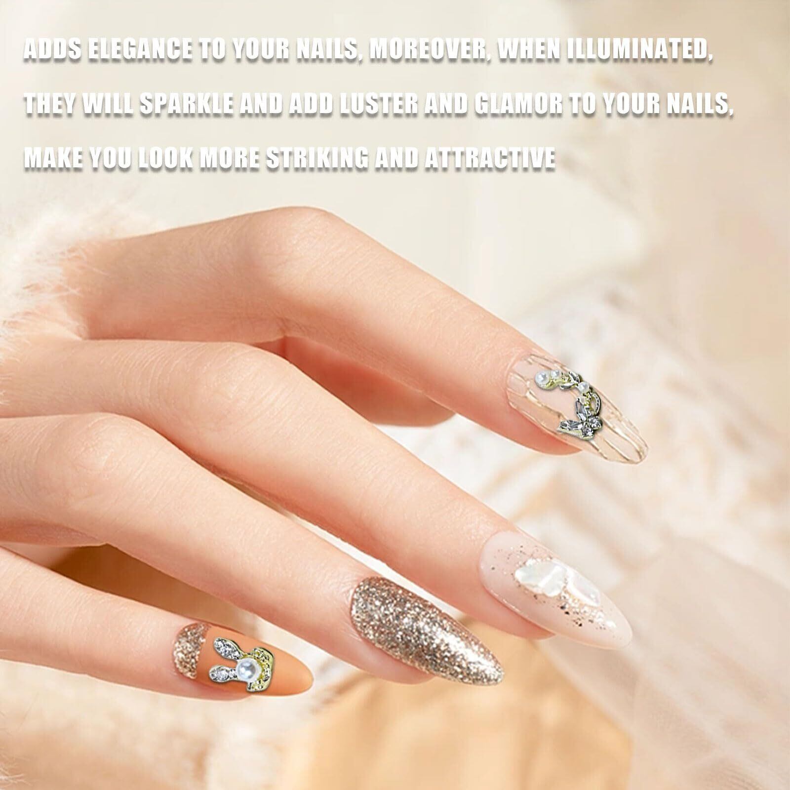 【素材】ネイルパーツは高品質の合金と樹脂素材で作られており、高級感があって、耐久性もあります。軽量で、使いやすいです。季節を問わず幅広くお使いいただけます。
