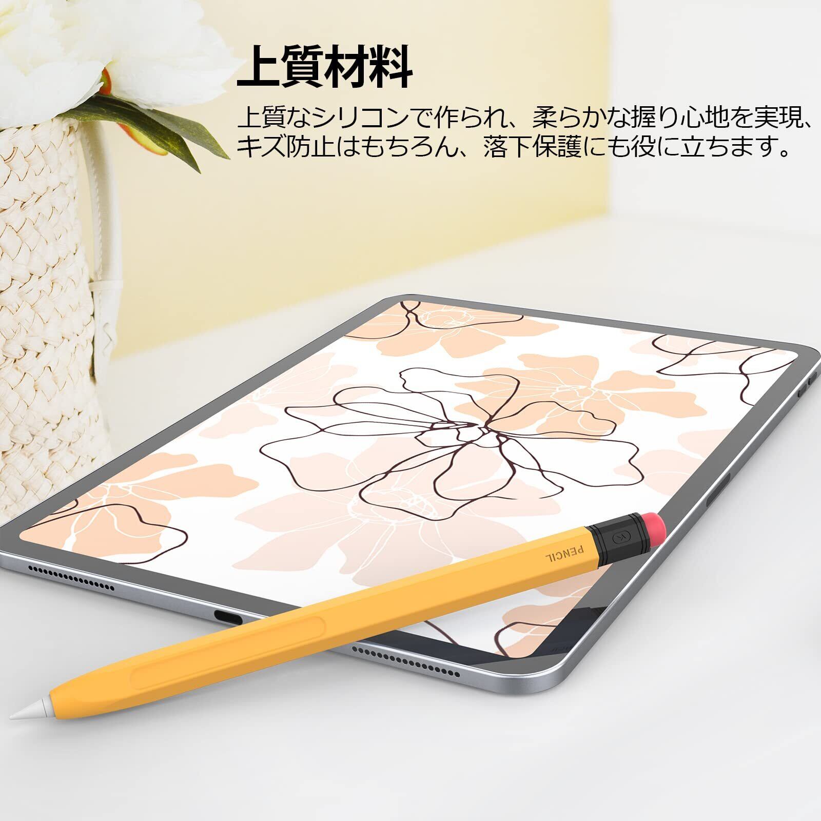 AhaStyle Apple Pencil Pro&Apple Pencil 第二世代用シリコン保護ケース 鉛筆レトロデザイン 柔らかなシリコン材質 Apple Pencil Pro&Apple Pencil 第二世代のみに適用 ワイヤレス充電対応 (イエロー)