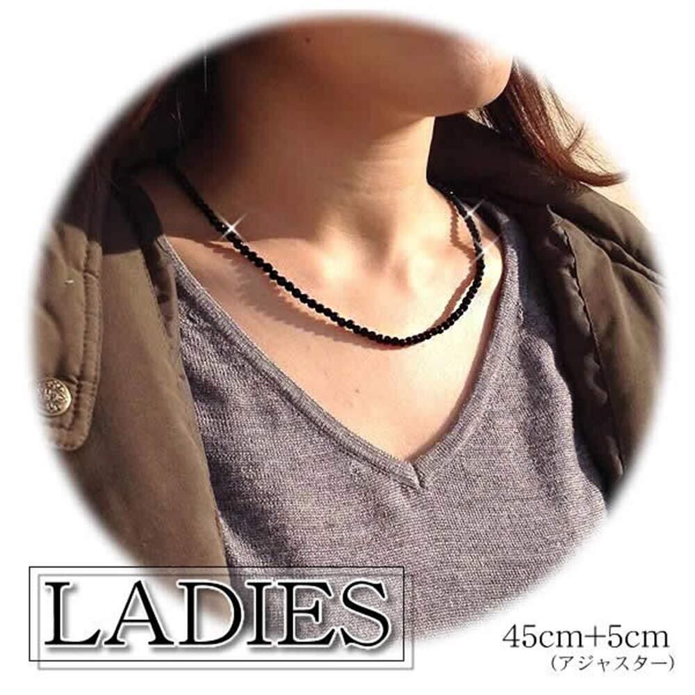 [Barzaz(バルザス)] オニキス ネックレス ステンレス レディース Mサイズ 金属アレルギー シンプル 黒色 紐タグ付き