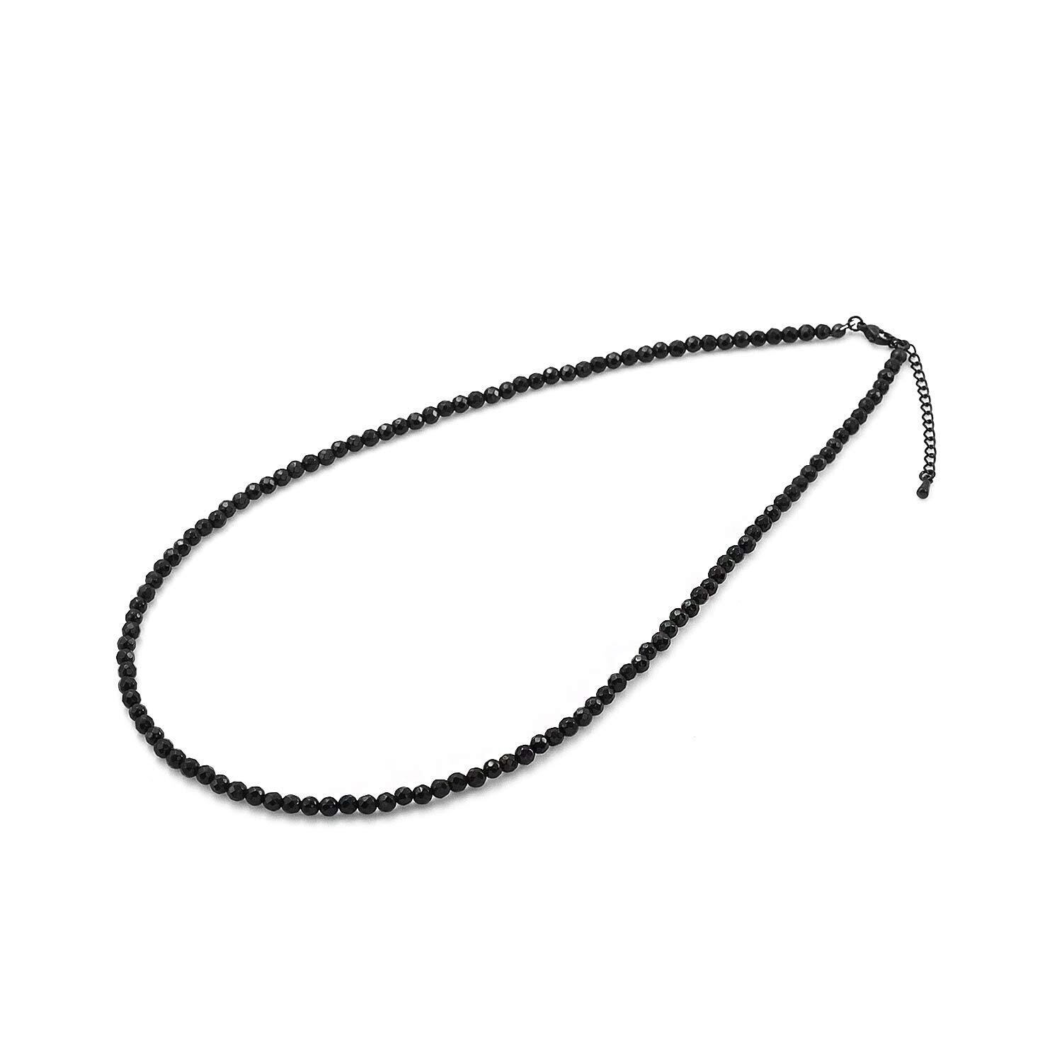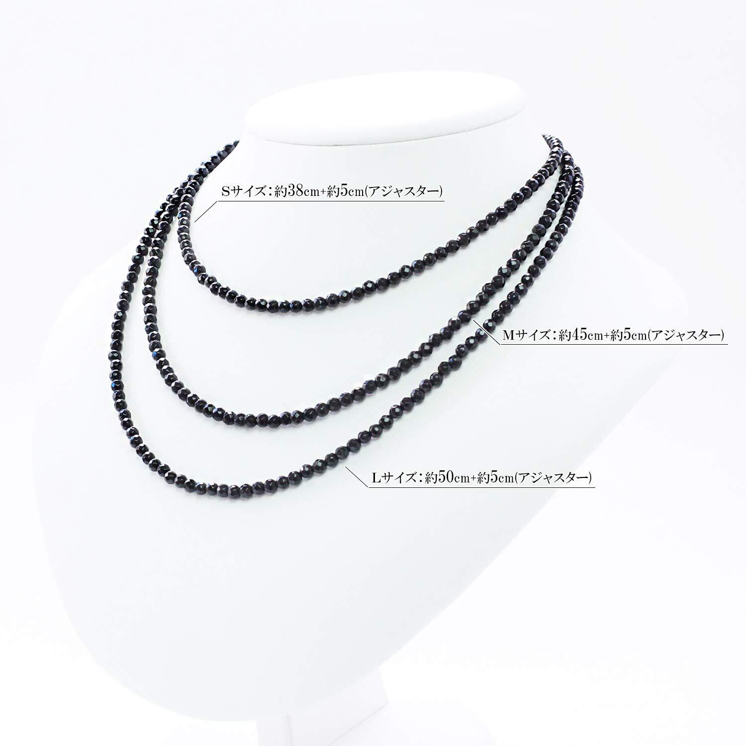 ステンレスネックレス 黒い天然石ミラーカット かっこいい 普段使い 大きめ 女性 誕生日プレゼント アクセサリー シンプル 可愛い Mサイズ 45cm +5cm 黒色 金属 アレルギー対応 黒い