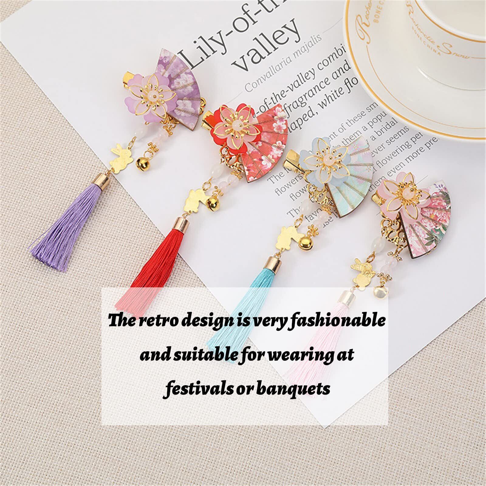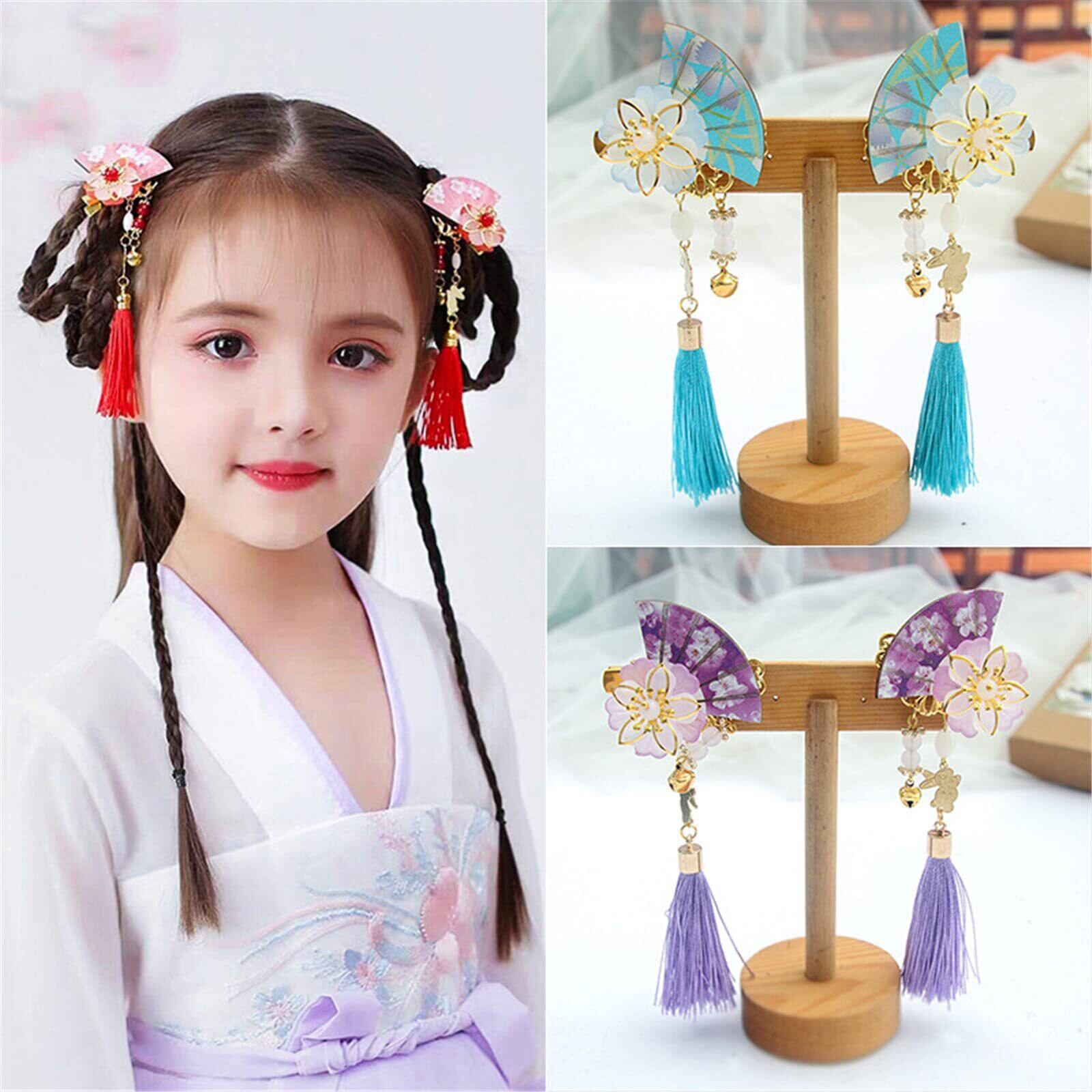 扇子 髪飾り タッセル 扇 花 ヘアクリップ 中華風 漢服 浴衣 和装 ヘアアクセサリー ヘッドドレス 子供髪飾り 入学式 卒業式 七五三 (ブルー)