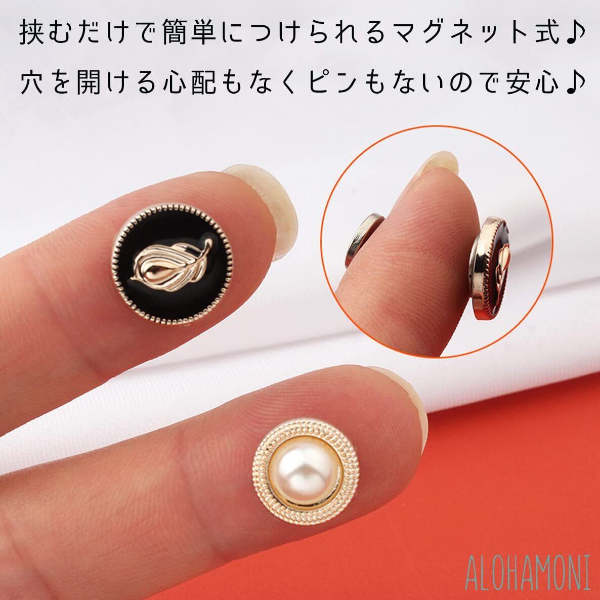 ALOHAMONI (アロハモニ) ブローチ タックピン 10個 セット ピンブローチ ピンバッジ ラペルピン ネクタイピン タイタック ハットピン ボタン 縫製不要 レディース メンズ キッズ ユニセックス (マグネットタイプ (ラインストーン))