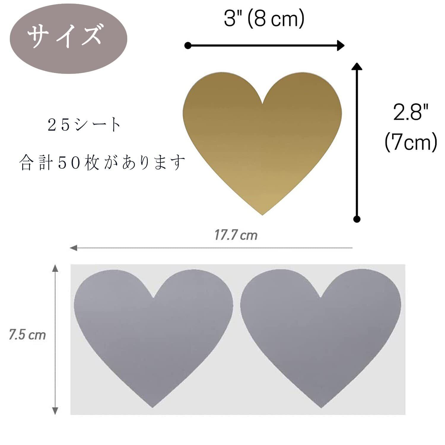 ハート型のスクラッチシールは、可愛くておしゃれです。50枚セットで、ゴールド、シルバー、レッド、3色から選べます。