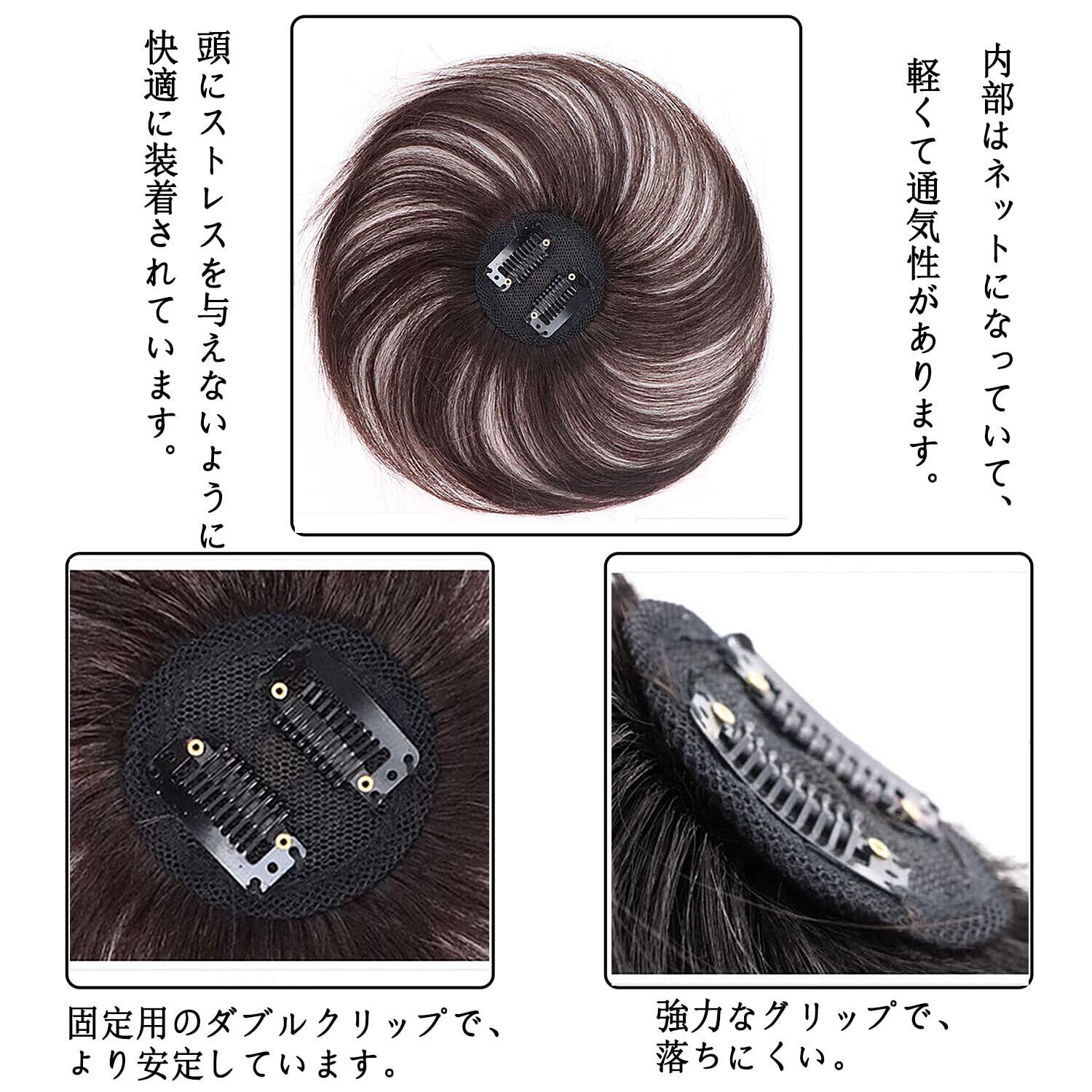 ヘアピース 頭頂部 人毛 ウィッグ かつら 女性 男性 つむじウィッグ 部分 ウィッグ 付け毛 トップピース ポイントウィッグ つむじカバー ストレート (ブラック、20 cm)