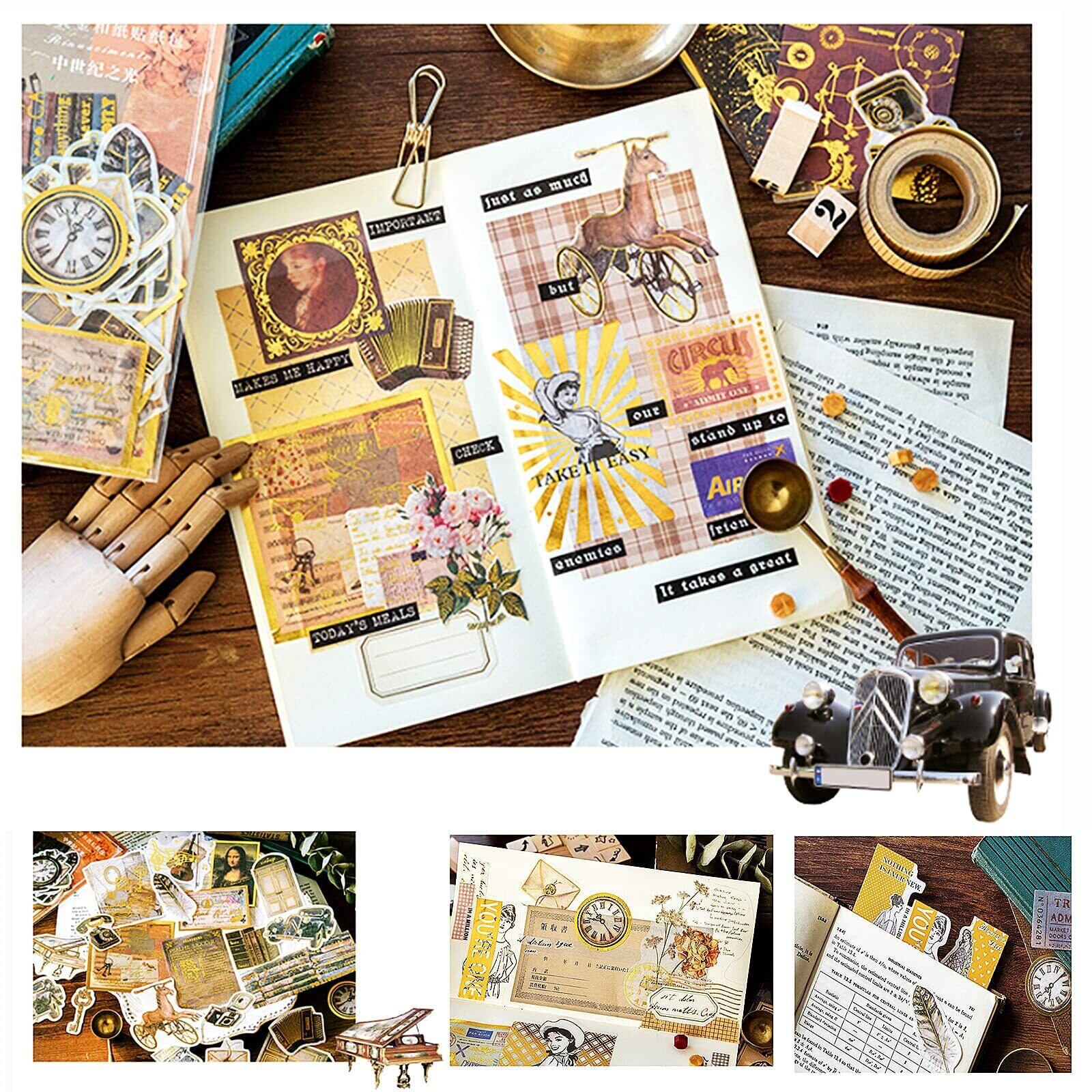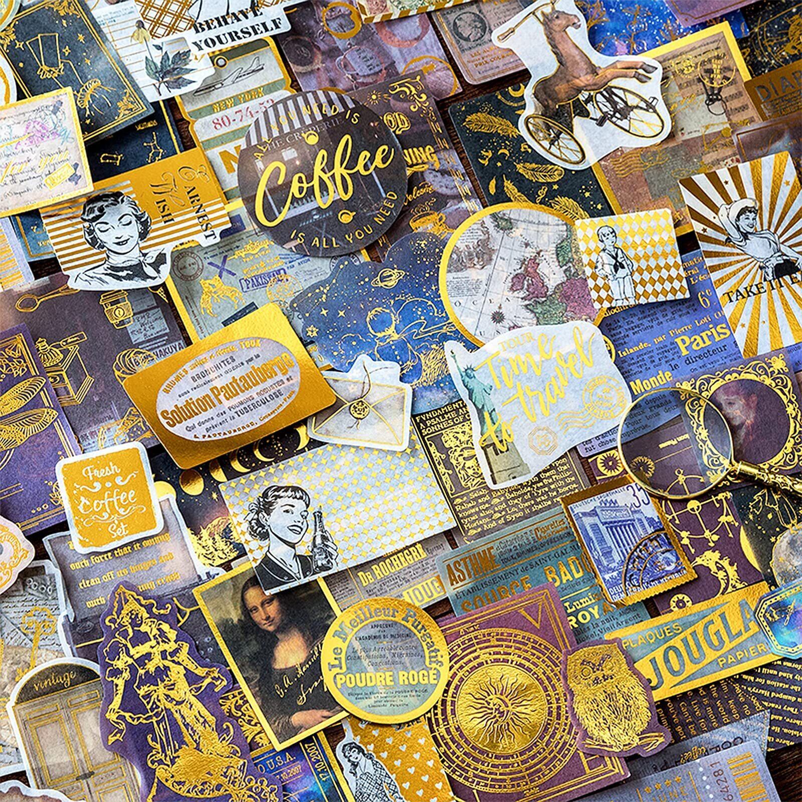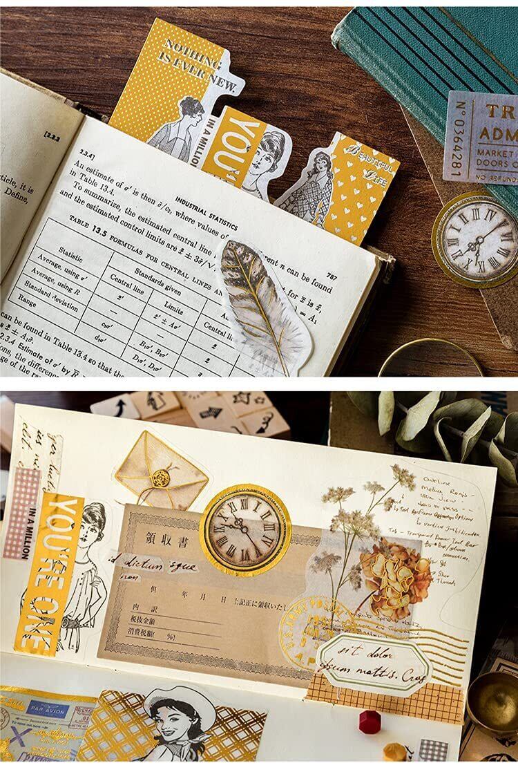 フレーク レトロ シール ステッカー ヴィンテージインステッカー コラージュ 素材 手帳 風景 海外 紙素材 和紙 メモ用紙 60枚 (クラシック)