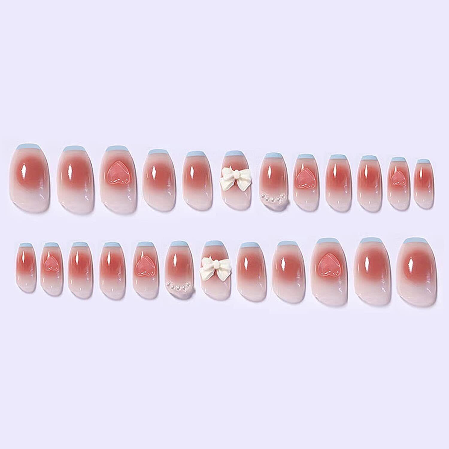 ネイルチップ 3D爪 かわいい 付け爪 ネイルチップ ショート ネイルチップ ネイルシール ピンク 黒 可愛い おしゃれ ネイルチップ ロング つけ爪 人気 ラウンドチップ 短め 長め24枚 (ピンクのハート蝶)